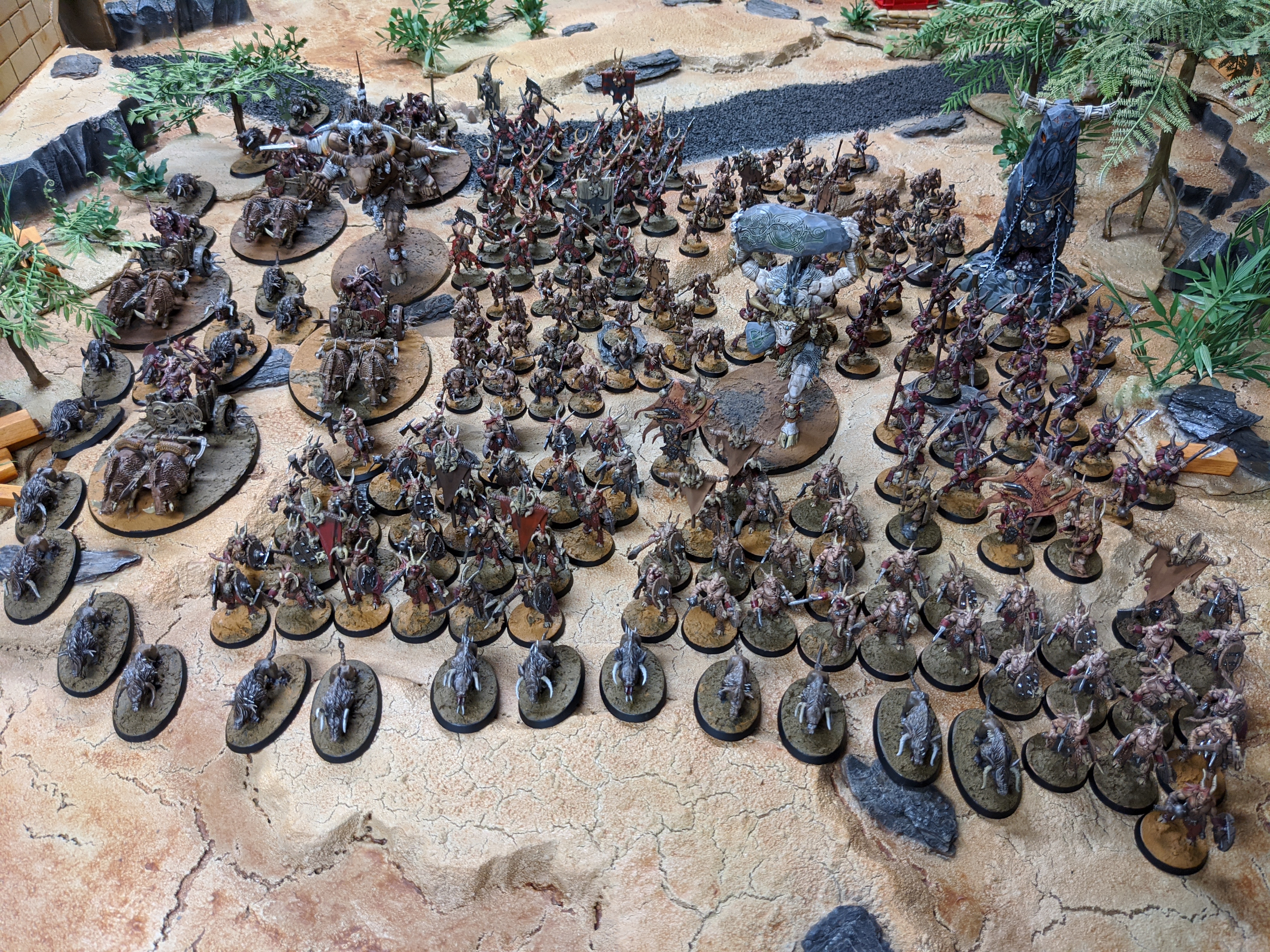 There's a lot of variance on what battlelines are good to take and a lot of it is managing what units you can fit in once the Heroes are taken care of. Bestigors and Bullgors are popular and are often taken first priority, with Gors and Ungors taken in various combination to fill out the list.