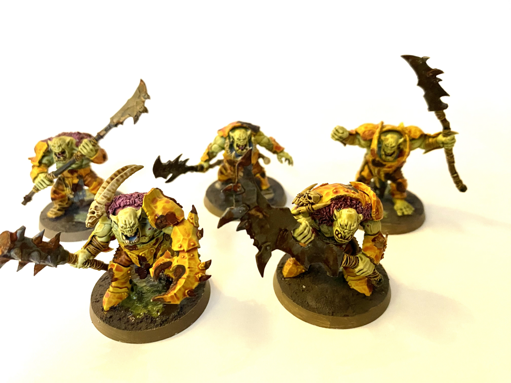 Brutes - They're pretty damn cheap at 140 for 5, and a unit of 10 will often put out more damage than 6 Gore Gruntas to armoured targets as they have rend on all of their attacks (whereas pigs have more than half their attacks coming from the rendless pigs). Their biggest issue is mobility, so including them will require you to either be maximising their movement by investing Mighty Destroyers commands in them early game, or teleport them so they can take the short path into your opponent's cranium. Once they get into combat they're great, if a tad vulnerable due to only a 4+ save. They even come with a fringe benefit in shutting off objective contesting for enemy models with a wounds characteristic of 1 or 2 nearby them, giving them a lot of play into armies that rely on just sticking some zombies or ghouls in the middle points and calling it a day.