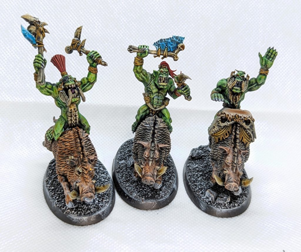 As Morboys are to Savage Orruks, Maniaks are to Boarboys. We trade the shield for two melee weapons, giving an extra attack and then another extra attack on the charge (no spears for Maniaks, so this is in lieu of the +1 to hit and wound for the rider) means you’re looking at 7 attacks per model, or 35 attacks out of a 5-model unit. Without Icebone or Glowing Green Tusks you’ll struggle into armour but even unsupported they’ll shred light units, and if you do have that support a reinforced unit can put out a murderous quanity of dice.Headkrakka's Madmob