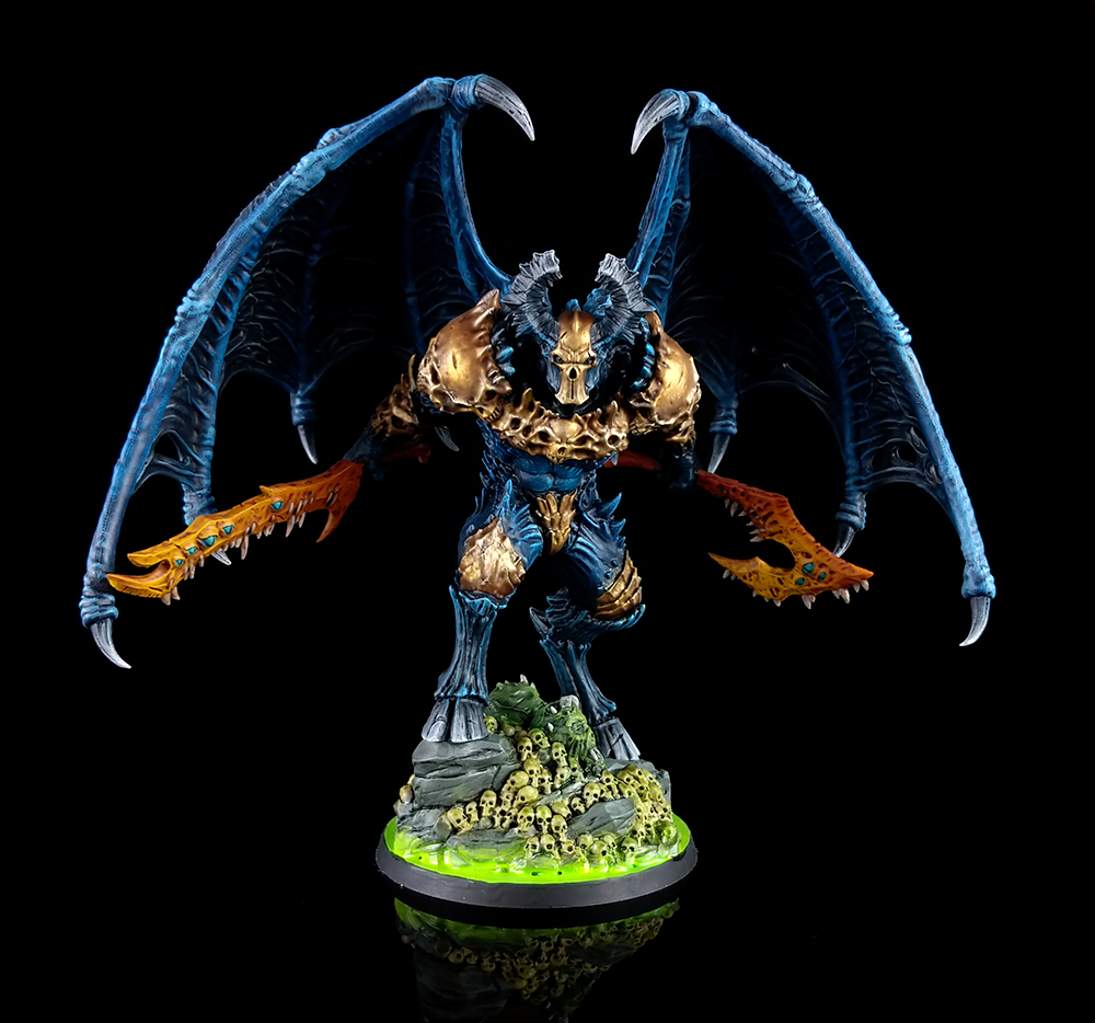 This Stratagem is used to make a Bloodthirster Exalted. You can choose one of the following upgrades during army construction or roll for two before the battle begins, re-rolling if you get duplicates:- Hellfire-Wrought Armour: This model has a 2+ save. Great boost to durability. B