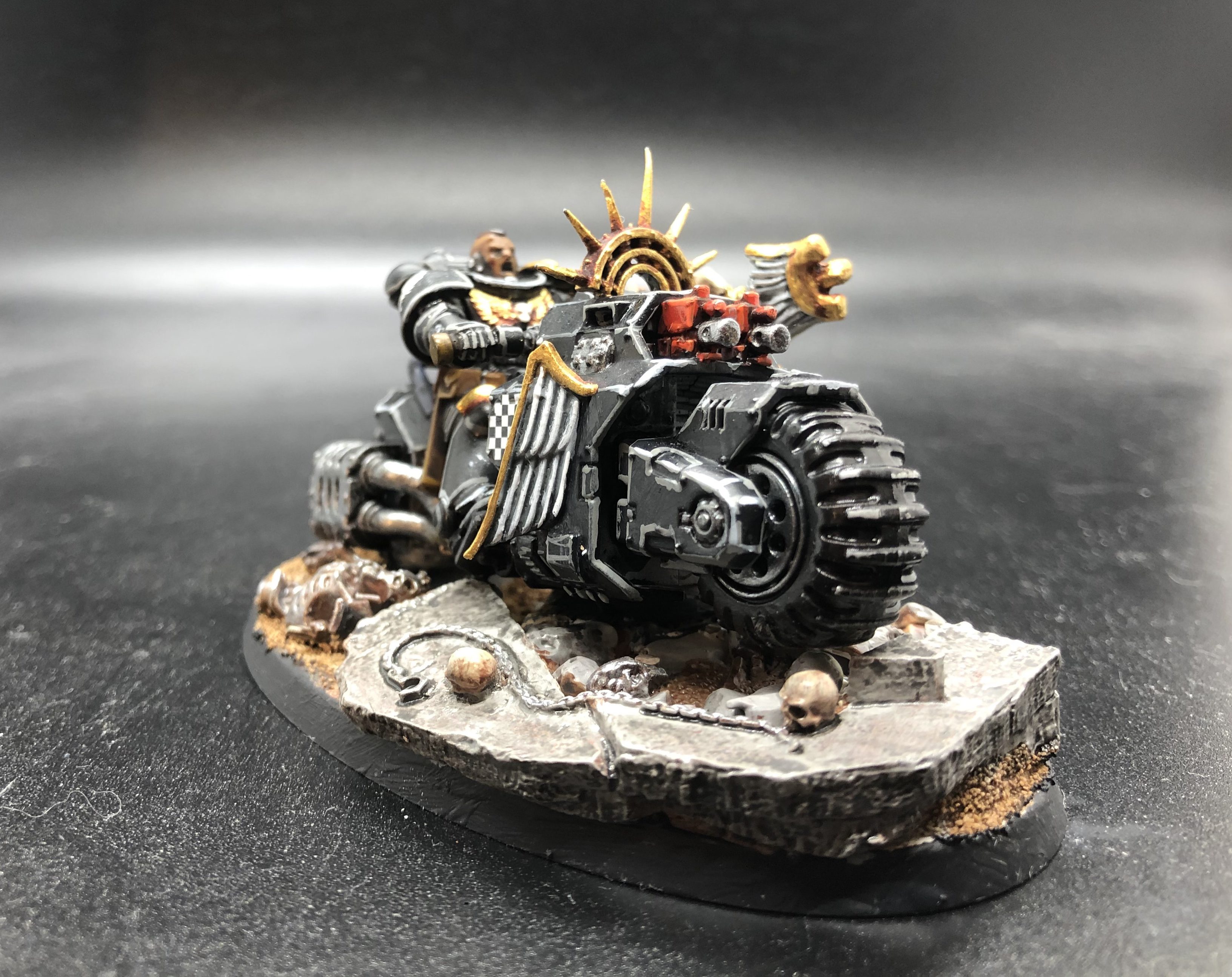 Ravenwing Apothecary [6 PL, -1CP, 135pts]: Bolt pistol, Chapter Command: Chief Apothecary, Frag & Krak grenades, Selfless Healer, Stratagem: Hero of the Chapter . Black Knight Bike: Plasma Talon