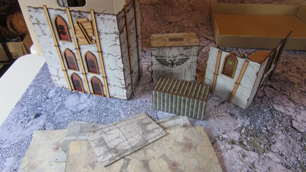 The reason for this is a bit more subtle, which is that the GW maps actually rely on some of the areas being fairly sparsely populated with actual physical terrain pieces to work. While the Bandua WTC ruins fit on the mats (and indeed, when we get to our maps you’ll see that we use them like this), because they’re solid along one side, if you put them directly onto GW maps you’ll find that even medium-sized vehicles start being unable to navigate the table. Bandua have some new sets designed specifically for the GW layouts coming soon (watch this space for a review), but these weren’t available at the time I was planning the Spring GHO UK.
