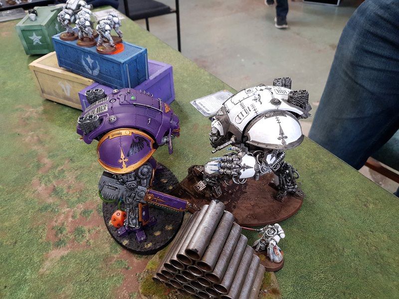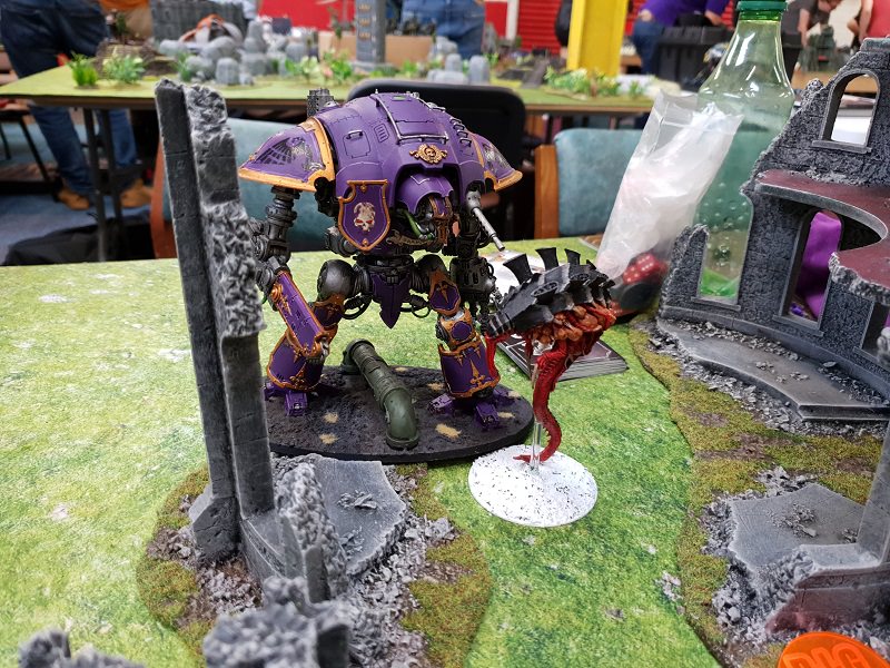 Tom's list has three Crusaders all with gatling cannons, thermal cannons, and an Ironstorm missile pod, supported by Space Marine Heavy Support units and a Graia detachment of Adeptus Mechanicus. The Knights provide a tough core of heavy firepower and reasonable combat potential, while the Thunderfire Cannons and Whirlwind help the Ironstorm pods out with their objective of clearing infantry units hiding away in cover. The Thunderfires additionally offer some movement control which can help keep the Knights safe from melee threats which might otherwise want to rush them. The Ad Mech provided valuable command points, cheap Troops and characters to cover objectives, and the powerful Graia stratagem to block psychic powers. The additional elements help shore up the potential weaknesses of Knights, making the army more flexible.