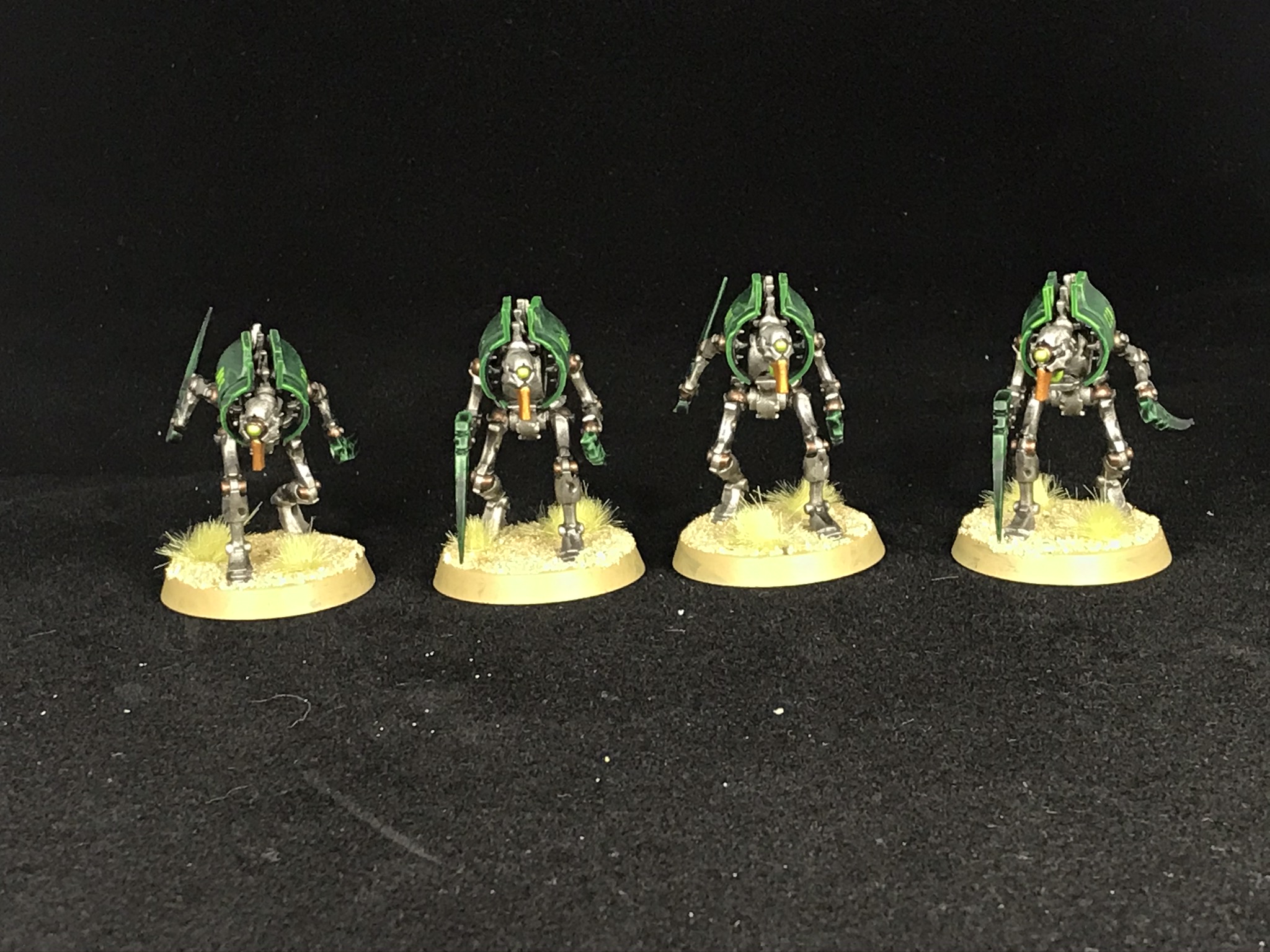Canoptek Wraiths are fantastic, and are one of the pillars that's making the Eternal Expansionist lists so good. They're 35pts each and have a great statline - 12" move that can go straight through terrain and enemy models, 4 S6 AP-2 D2 attacks each, and healthy defences at T5 3W 3+/4++. Finally, they can Fall Back and charge, letting them leap from target to target in a very menacing way.Technically there's a bunch of upgrades you can buy these but I would suggest not bothering - on their base build and rate they're super strong, being good as a roving assassin/menace unit in most lists and great in Eternal Expansionist lists or those packing a souped up buff Technomancer. Your basic play for these is to spend turn one either taking out enemy infiltrators or moving to some mid-board Obscuring terrrain, then striking out at wherever your opponent is weak from there to do some damage. Not much more to say - strong unit, get at least five models, and for some builds get a lot more.