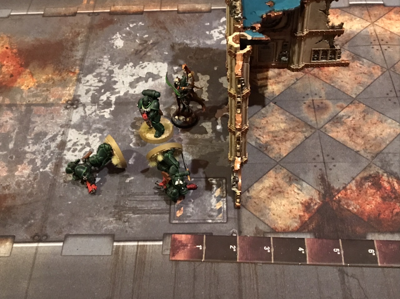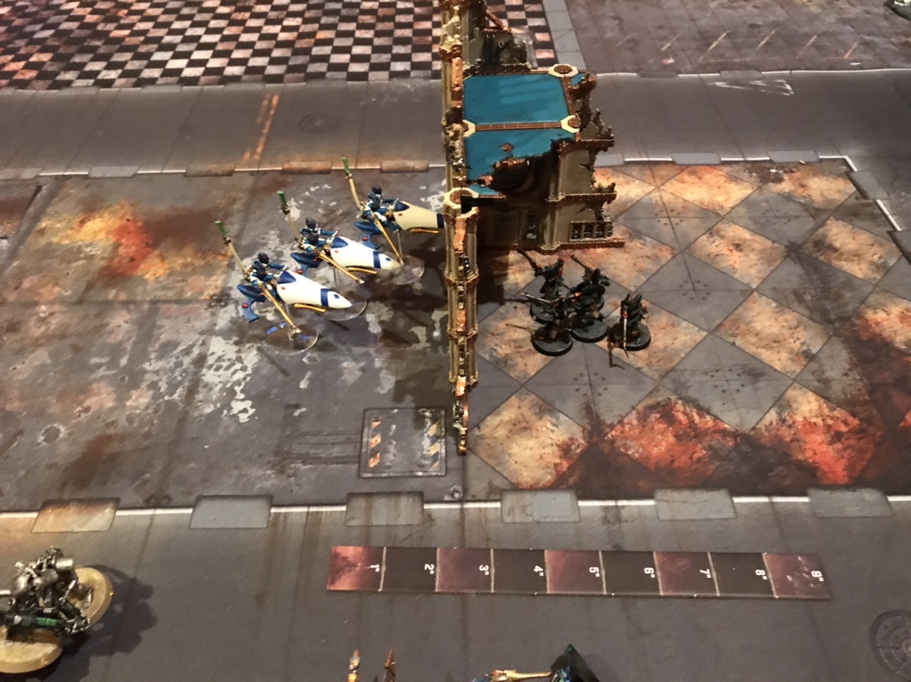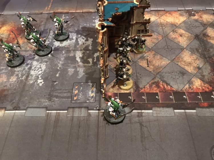 The Wraiths are denied dinner one final time.Even better, you can probably emergency exit out the far side of the ruin next turn, leaving your opponent cursing, once again, the incredibly permeable walls of the 41st millenium.