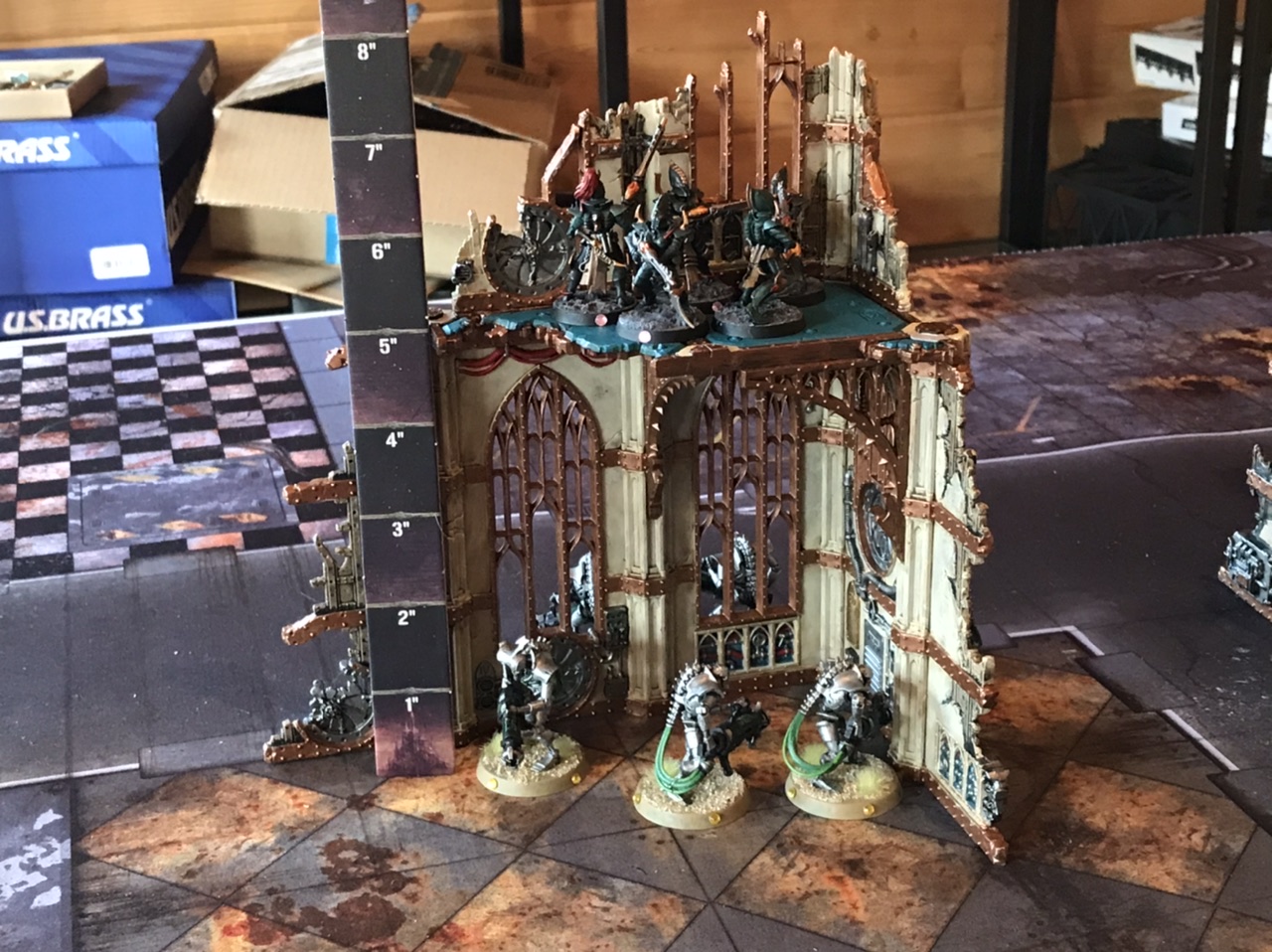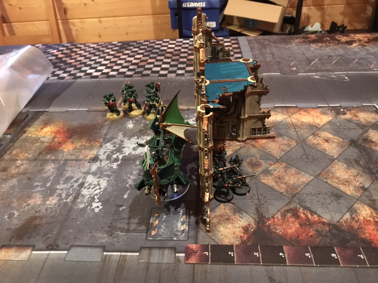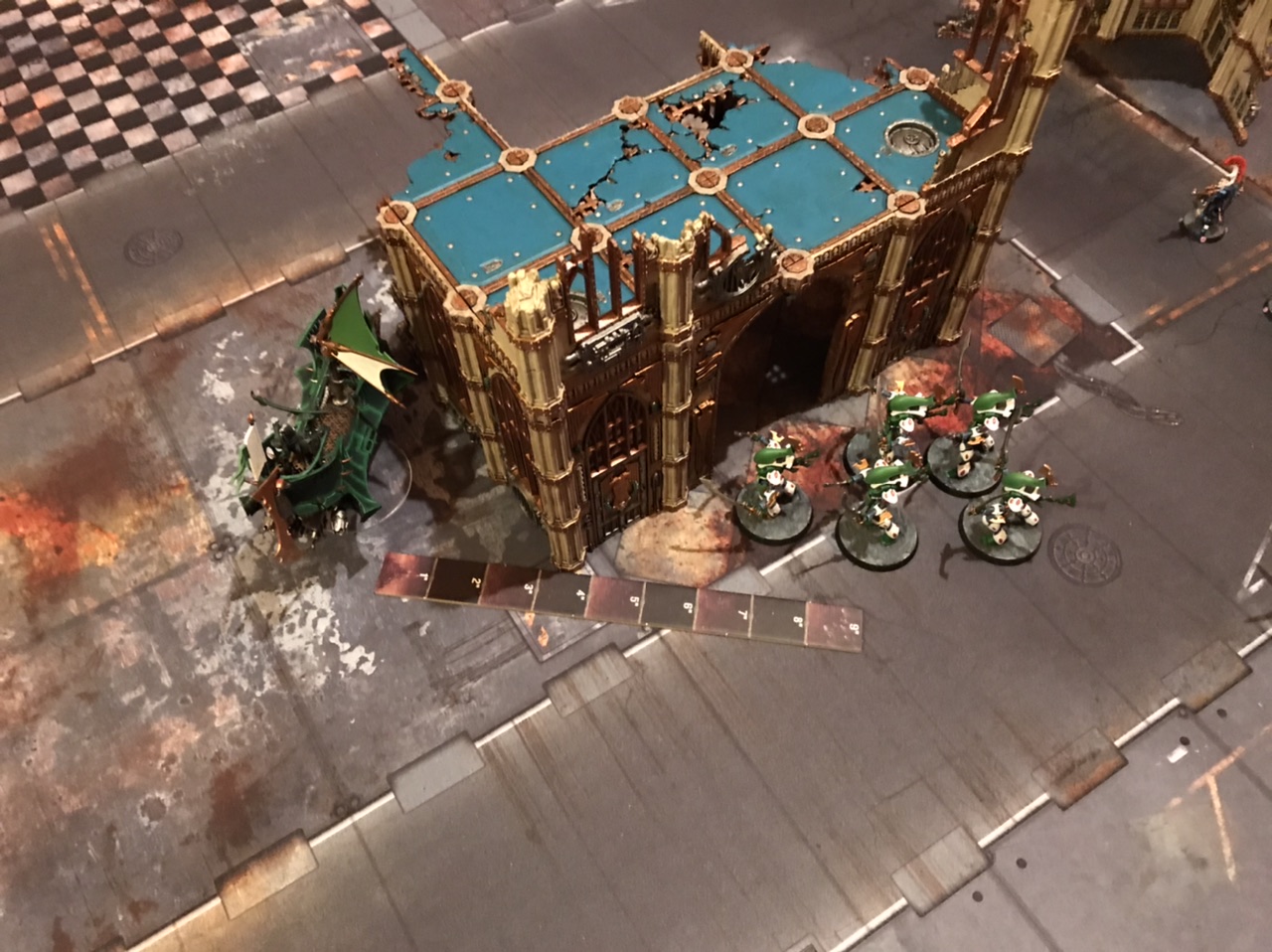 - If a ruin piece is big enough that you physically can't see around it from your side of the table, make sure to go check if your opponent has anything in there before planning your movement. I've won games by surprising my opponent like this, and lost them to forgetting to check myself! This is especially true when dealing with units that can perform heroic interventions.