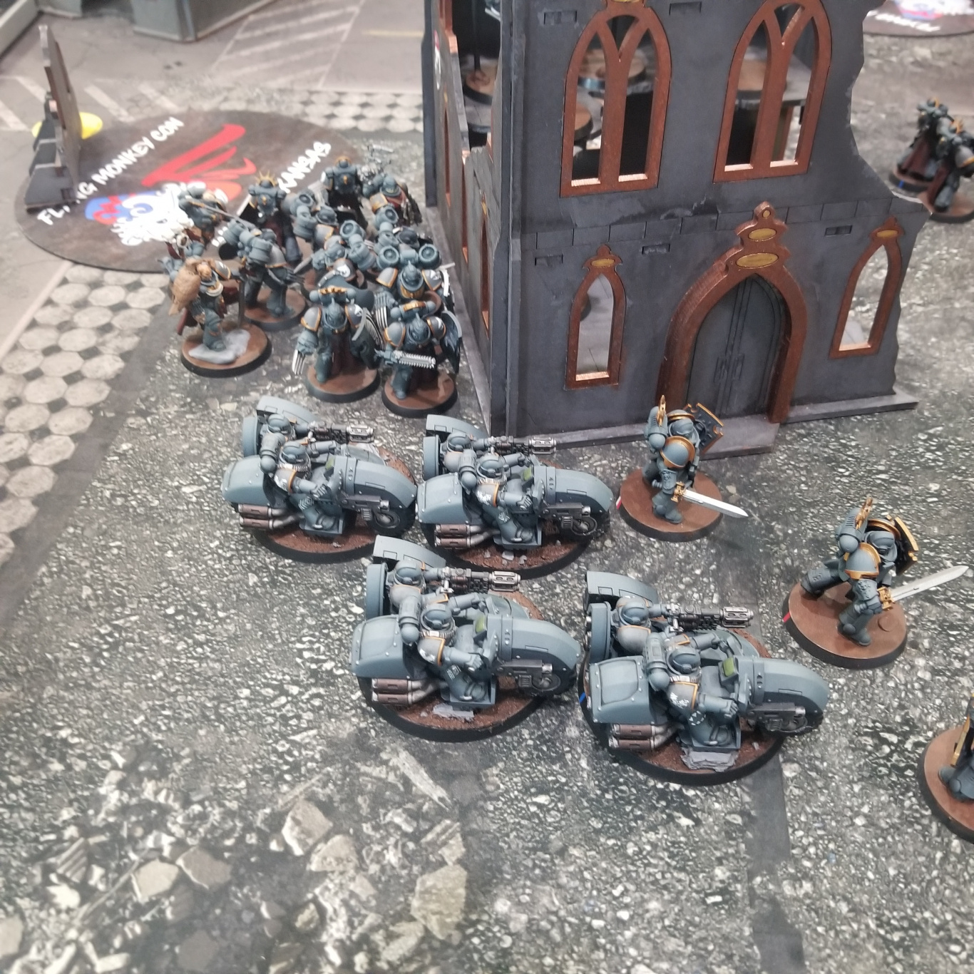 - Multi-melta attack bikes and Plasmaceptors provide shooting backup