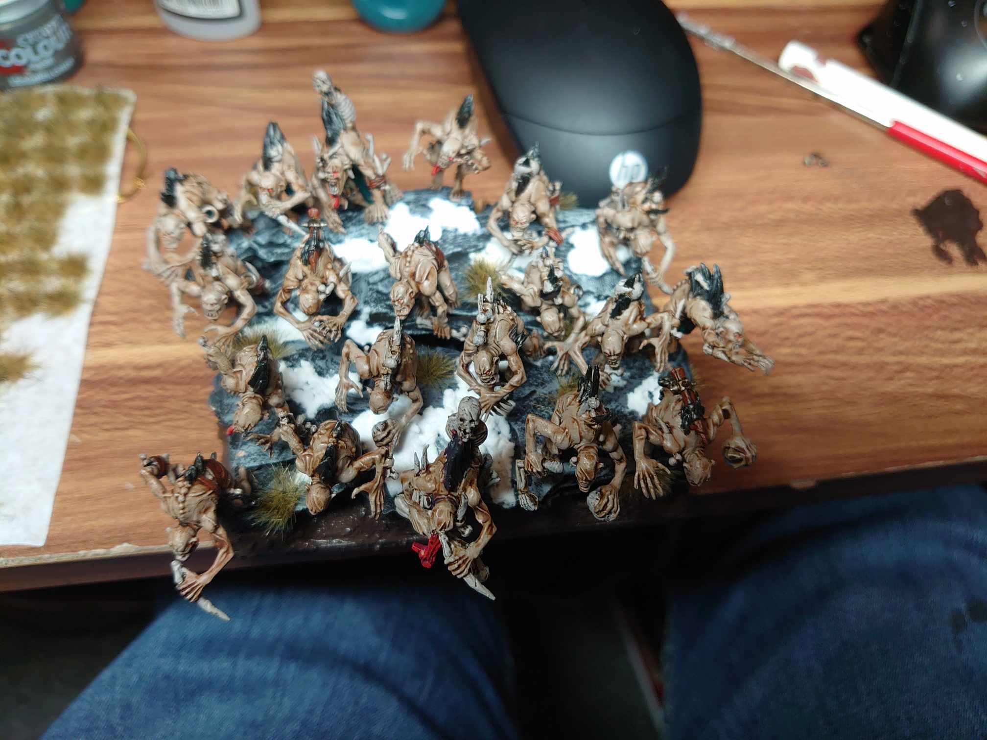 Here's some slightly better shots of the hobbying process, and of the result. If I'd been clever, I'd have catalogued the whole process, but as I'm only just getting the hang of taking regular pics during games, I didn't think to make check-ins going through this. Bonus points to the readers who can identify which kits were pillaged for the weapons, and let me know in the comments if you want more detail on hobby content in the future - the only way to get me to do it is to tell me that the little commenting people who live in my phone will press the dopamine buttons if I do.
