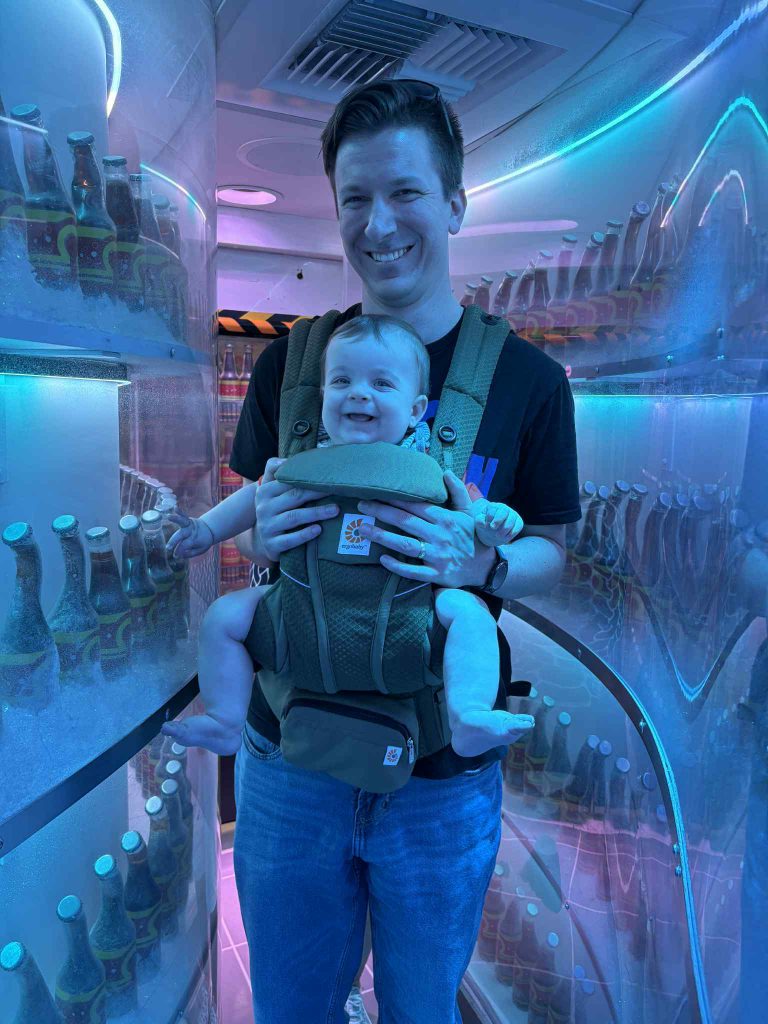 Fortunately, Omega Mart was perfect for this sort of trip. Like Meow Wolf’s other locations, Omega Mart is an interactive art exhibit designed to make you feel like you’ve stepped into a fantastical world. There’s immersive story telling and scavenger hunts to be had for those who want to learn the secrets of Omega Mart, plus a “secret” bar, but the baby strapped to my chest can’t read or drink alcohol. He did love the bright colors, fun sounds, and wacky lights though, so walking around the place for an hour was a huge hit.