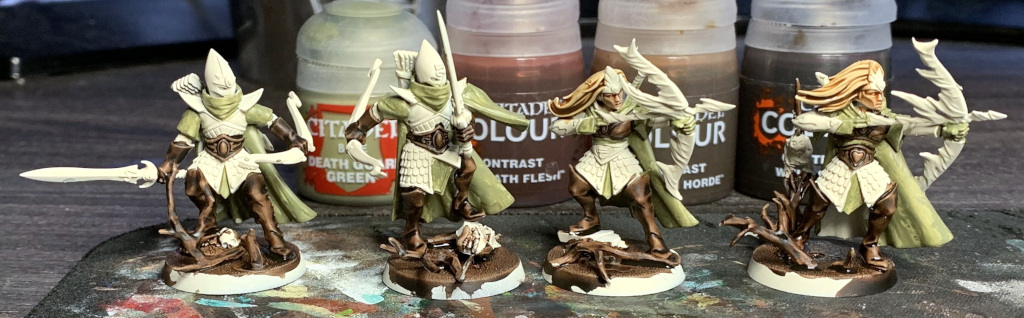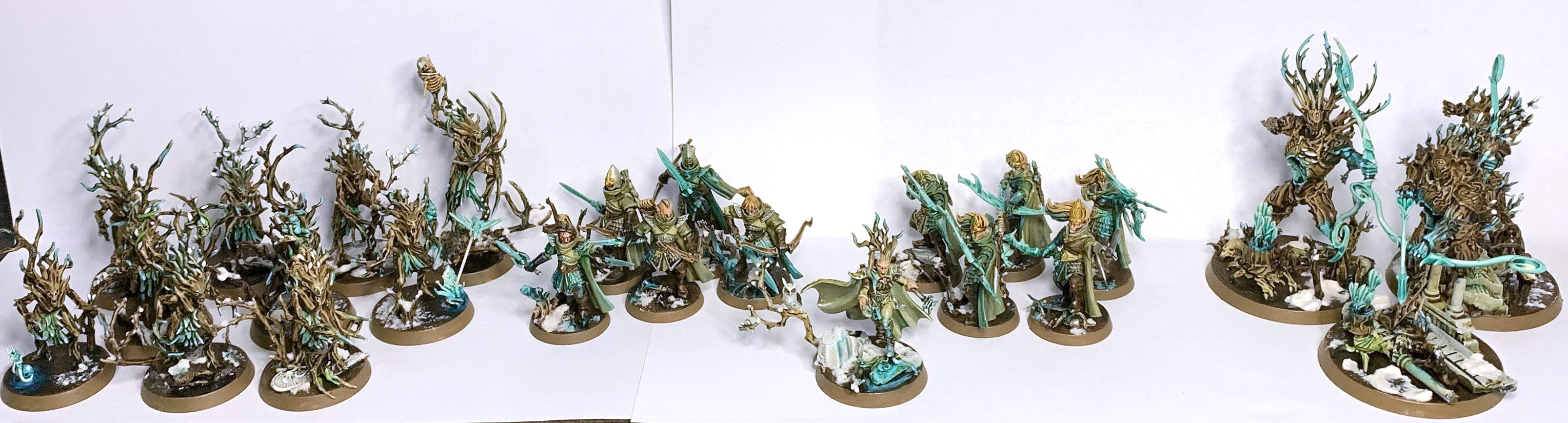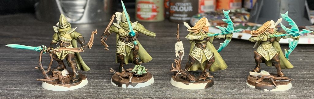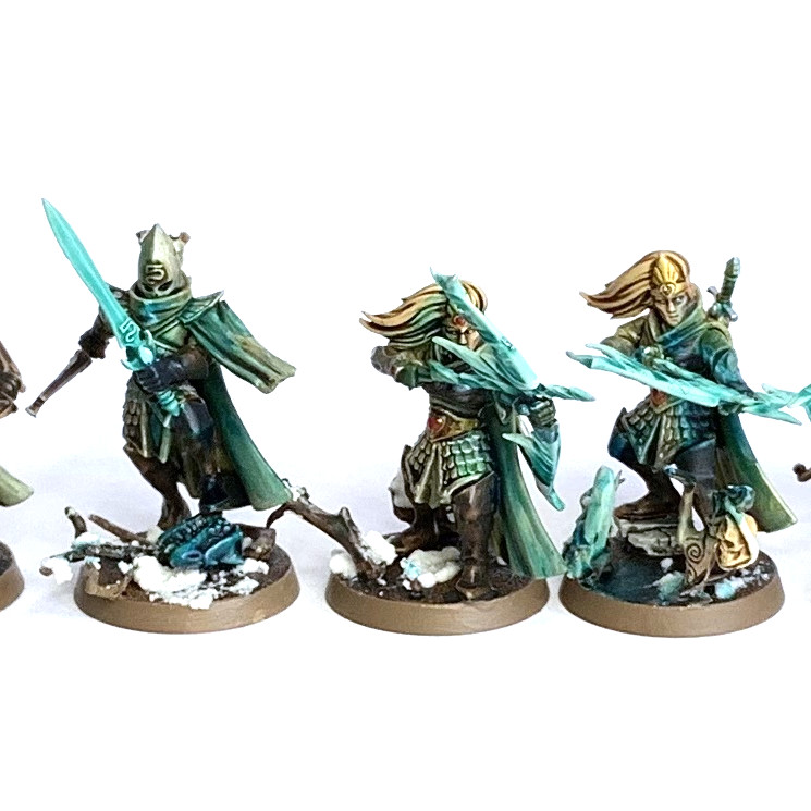 They're painted in the same scheme as the dryads but with the blow glowing weapons of the Aelves to tie them together.