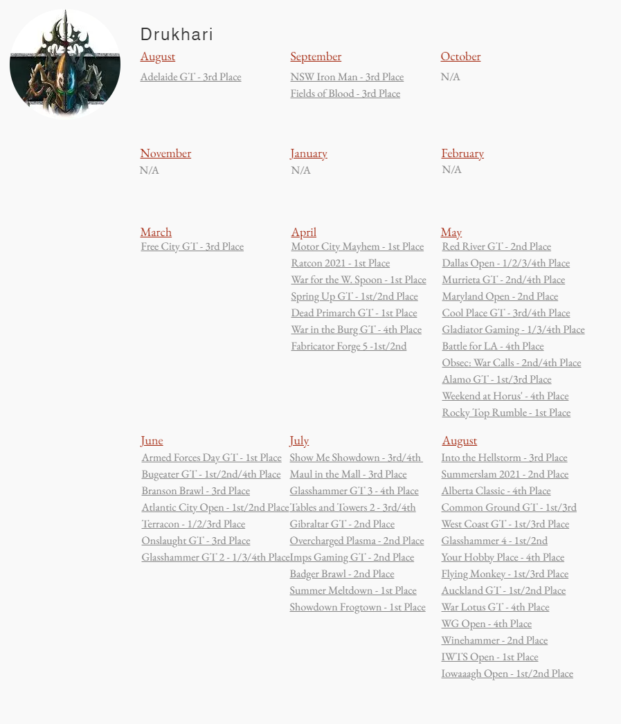 Drukhari Top 4 GT finishes by Month in 9th edition
