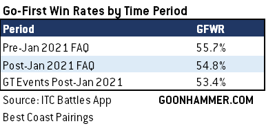 So the current Go-First Win Rate stands at somewhere around 54%. But how did the Orlando event, with its much-heralded terrain setup fare comparatively?