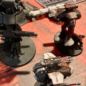 With this in mind, I’ve made a list that I think can deliver the Reaver into a target pretty quickly with minimal setup, between my stratagem picks here and Corrupt Titan bonuses. The four Warhounds can zip along really quickly with minimal heat as well, thanks to Preternatural Grace, as I learned the hard way in my first Titanicus game how quickly Warhounds can overheat whenever you push a reactor for any reason. The Warlord is a support piece here, acting as a fire support platform as it walks up the field and hanging onto the power claw in case something wanders too close. With Frozen Soul, it’ll stay ice cold all game to boot.