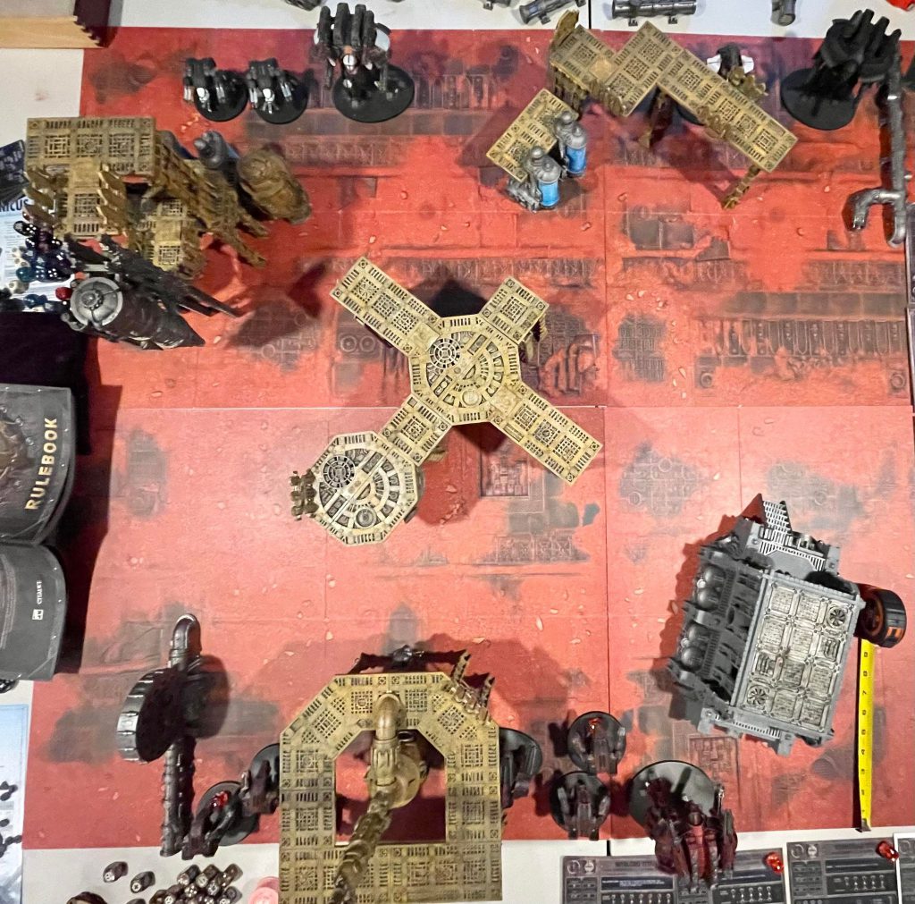Work got crazy. Titans have way more trim than I remember. I joined a game of Lancer (a pen and paper giant robot RPG, which rocks). Andrew and I’s schedules clashed, delays followed, needless hobby crunch ensued. By the time Andrew and I finally got our game in, I was exhausted, stressed, and half crazed from trying to make sure this game happened. I had dark circles under my eyes. I craved only Titandeath, that sweet, sweet engine kill. If method acting for wargaming existed, I was doing a pretty great job getting into character for Legio Interfector.