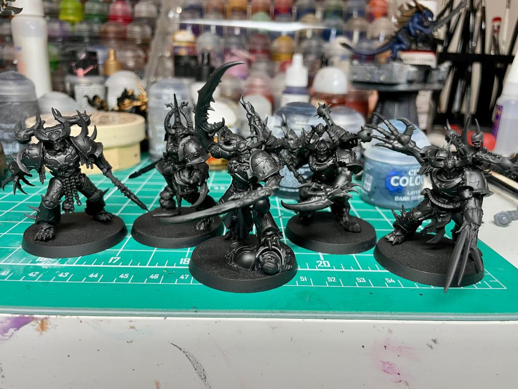 This time around, I did some heavy kitbashing on 5 more possessed, and broke out of my painting slump by painting up 4 Legionaries and 5 Chosen to my “Battle Ready” standard using one of the biggest time-saving tricks I’ve ever tried in my time painting models.