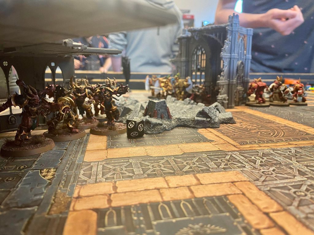 Game one against Grant’s Ultramarines is the very start of the assault on Miltner’s Docks. The forces of Strike Force Pilum have made landfall and launch a lighting strike against the port. They don’t expect to find the Warhost of the Soulbound, forewarned of the Astartes arrival through daemonic prophecy, waiting for them there, ready to halt the attack. Can the Ultramarines break through the Chaos lines?
