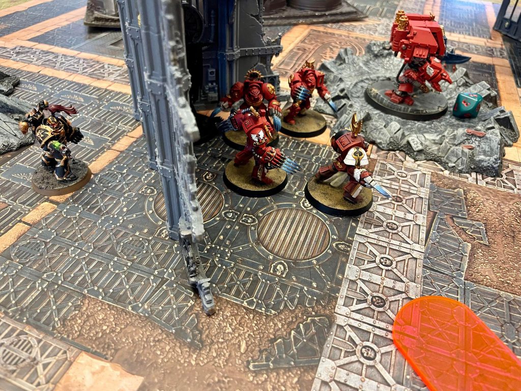 The hero Aspiring champion bravely hides from the Terminators to hold the pointGame 4: “Decisive Blow”, Versus Adam’s “Strike Force Praxor” (Ultramarines)