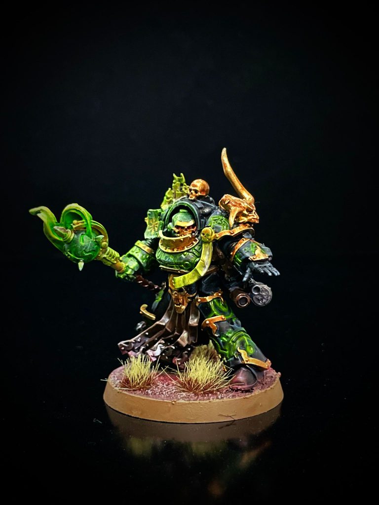 Chaos Space Marine Havocs. Credit: SwiftbladeI also finished painting that Word Bearers Terminator Praetor to use in crusade. The armor has engraved runes that don’t really show well on black armor, even with edge highlights. So, since I plan to give this model the Exalted Possession warlord trait anyways, I thought it would be a neat effect to make the runes glow. I think with the OSL from the flame mace it doesn’t pop quite as much as I’d like, but I’m still satisfied with it.