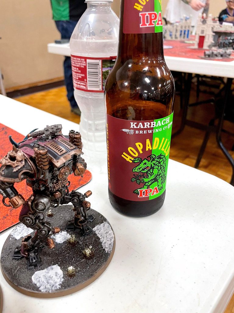 Dead War Dog hanging out with the IPAOnce again, I made the mistake of strat reserving my executioners like I did against Carmine. Which once again meant I didn’t have the firepower to slow down the Melta nightmare turn one before the rest of the game I got blasted to pieces. Also his character dread makis his deepstrike charge and takes an entire army’s worth of shooting to go down. It’s a bad matchup for me, and my dice are cold too boot.