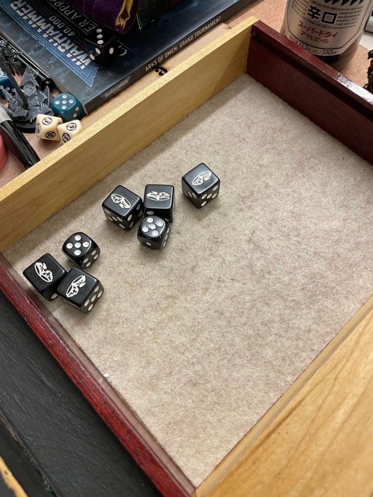 I roll a seven. Damn. Well, I’ve got CP, might as well reroll.