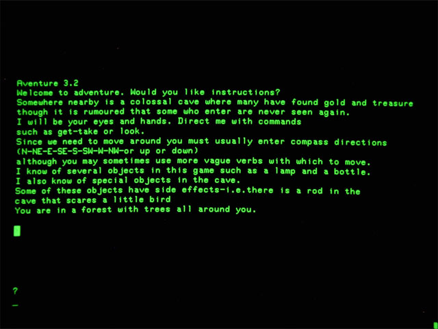 Created in 1976 by Will Crowther, Colossal Cave Adventure is one of, if not the first, text-based adventure game. In the game players take on the role of an adventurer exploring Colossal Cave, a place where some have found fortunes in treasure and gold but others are never seen again. The player uses text commands like TAKE, LOOK, and cardinal directions (N, E, S, W) to move through the world described by the program narrator. Along the way you’ll navigate a maze of twisty passages - all alike - and contend with traps, monsters, and magic. Colossal Cave Adventure would inspire a host of games in the following years, birthing an entire genre - one which modern graphics have largely killed.