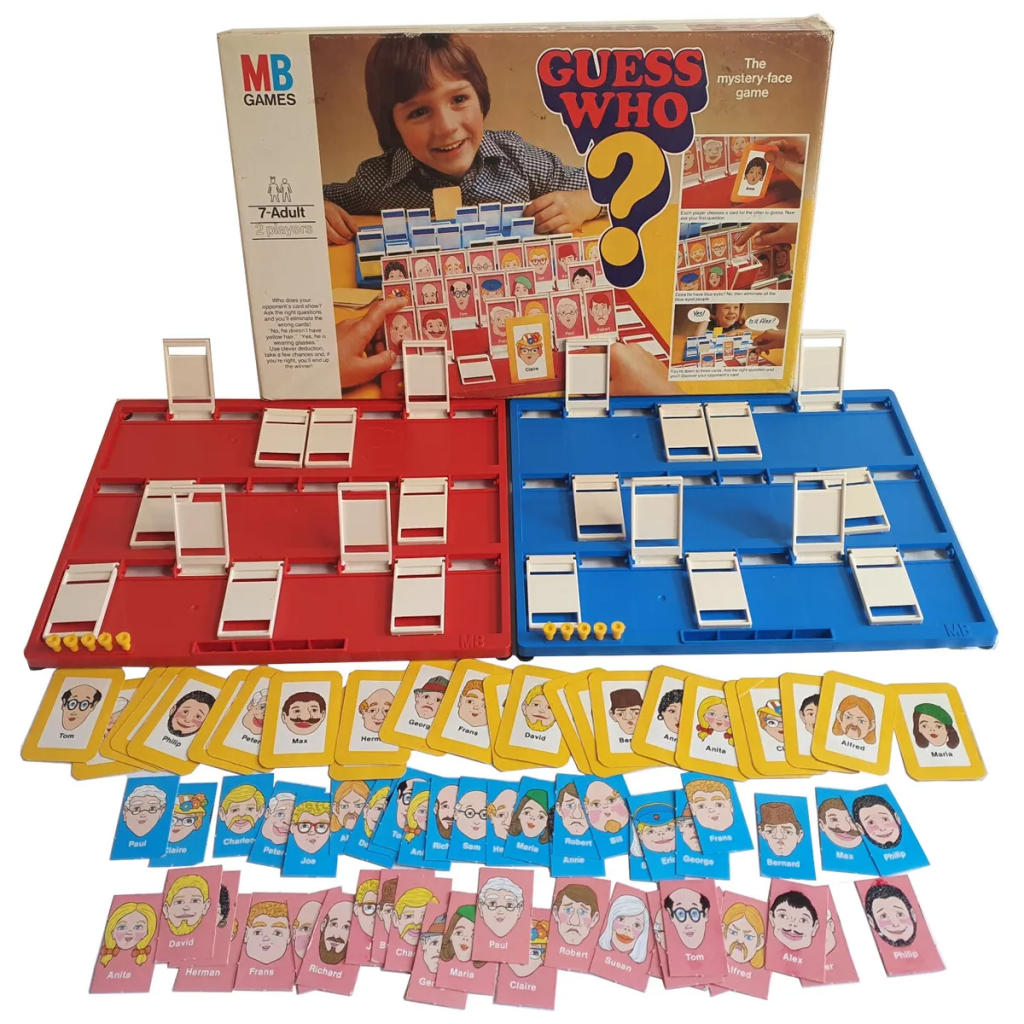 Milton Bradley published this identity guessing game in 1979. Each player sets up a board of potential suspects and then randomly draws a person for their opponent to guess. Players then alternate asking yes or no questions about the other player’s person such as “do they wear glasses?” and “do they have a mustache?”, eliminating candidates based on the opponent’s answer, with the goal of being the first player to correctly guess the opponent’s person. It’s a fun game for kids, but one that adults will quickly find ways to solve. The original version has its issues - such as only having five women and treating gender like a characteristic - but it’s a fun version of the 20 questions game formula.