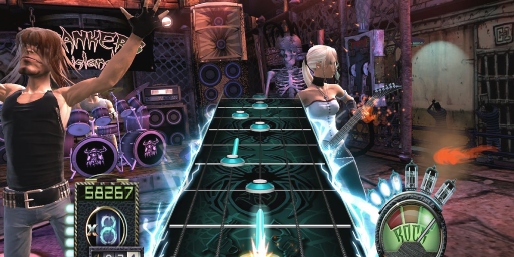 TheChirurgeon: It's worth mentioning Guitar Hero, which released in November for the PlayStation 2 with an innovative guitar controller. Well, innovative in the US - GuitarFreaks was already a hit in Japan since 1999, but was little known in the US until Harmonix and RedOctane teamed up to bring the controller stateside. It's a simple but addictive premise, and by matching the colored buttons and play bar to the rhythm you can more or less emulate the thrill of playing some of your favorite jukebox hits. Guitar Hero was a massive success and would go on to spawn an entire music game movement, ultimately culminating in Rock Band and Guitar Hero III giving us home pretend band/karaoke setups.