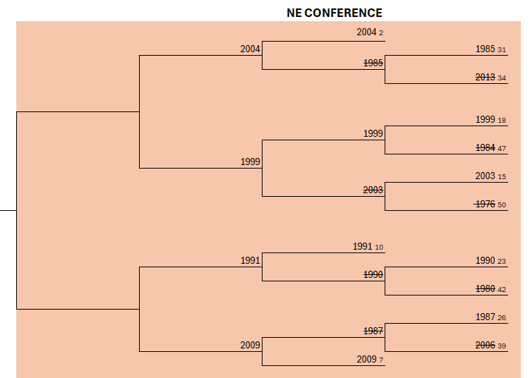 Today we're returning to the Northeast Conference for our Sweet Sixteen matchups. The first of these sees our 2-seed, 2004, up against 1999.