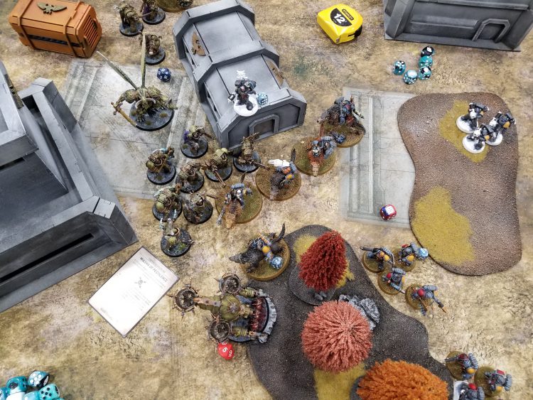 Shortly after turn 1 started. I've already lost a PBC and a bunch of wounds to the goddamn explosion.The Mission: The Scouring