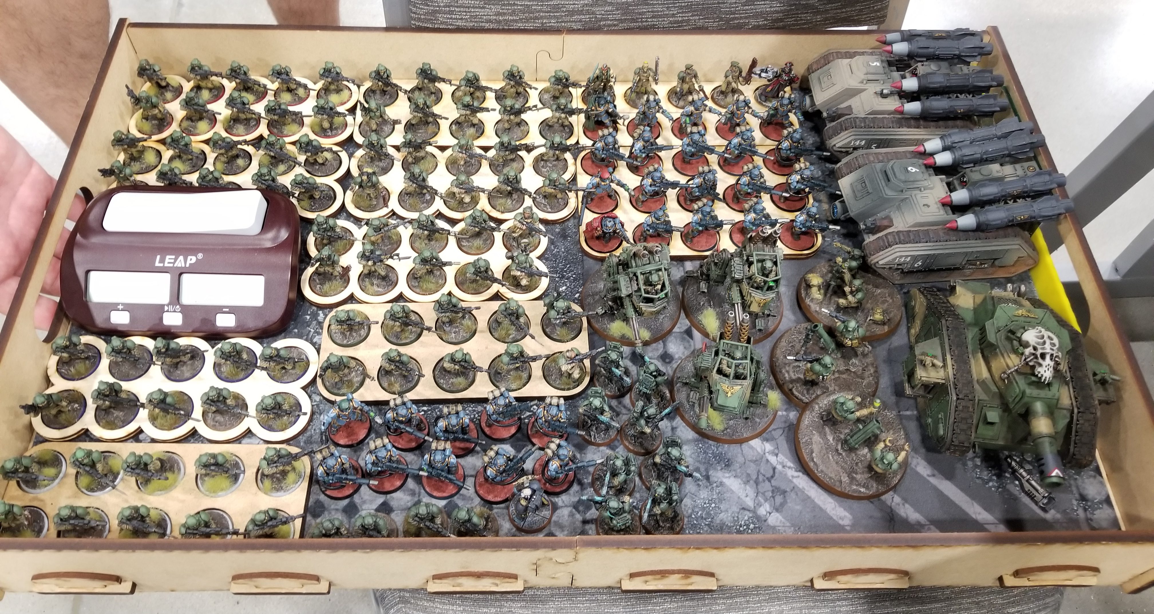 - Get in some more practice games against Admech and Sisters. I didn't run into either during the event, but I don't have a great mental plan for how to deal with either faction at the moment. Enriched Rounds would still absolutely shred my shit, and I don't have a great notion of how I'd play against the new Sisters book as I haven't had any games against them yet. While neither faction is still super popular I'm bound to run into them in a competitive environment eventually, particularly if I start 2-0 or 3-0 at an event.