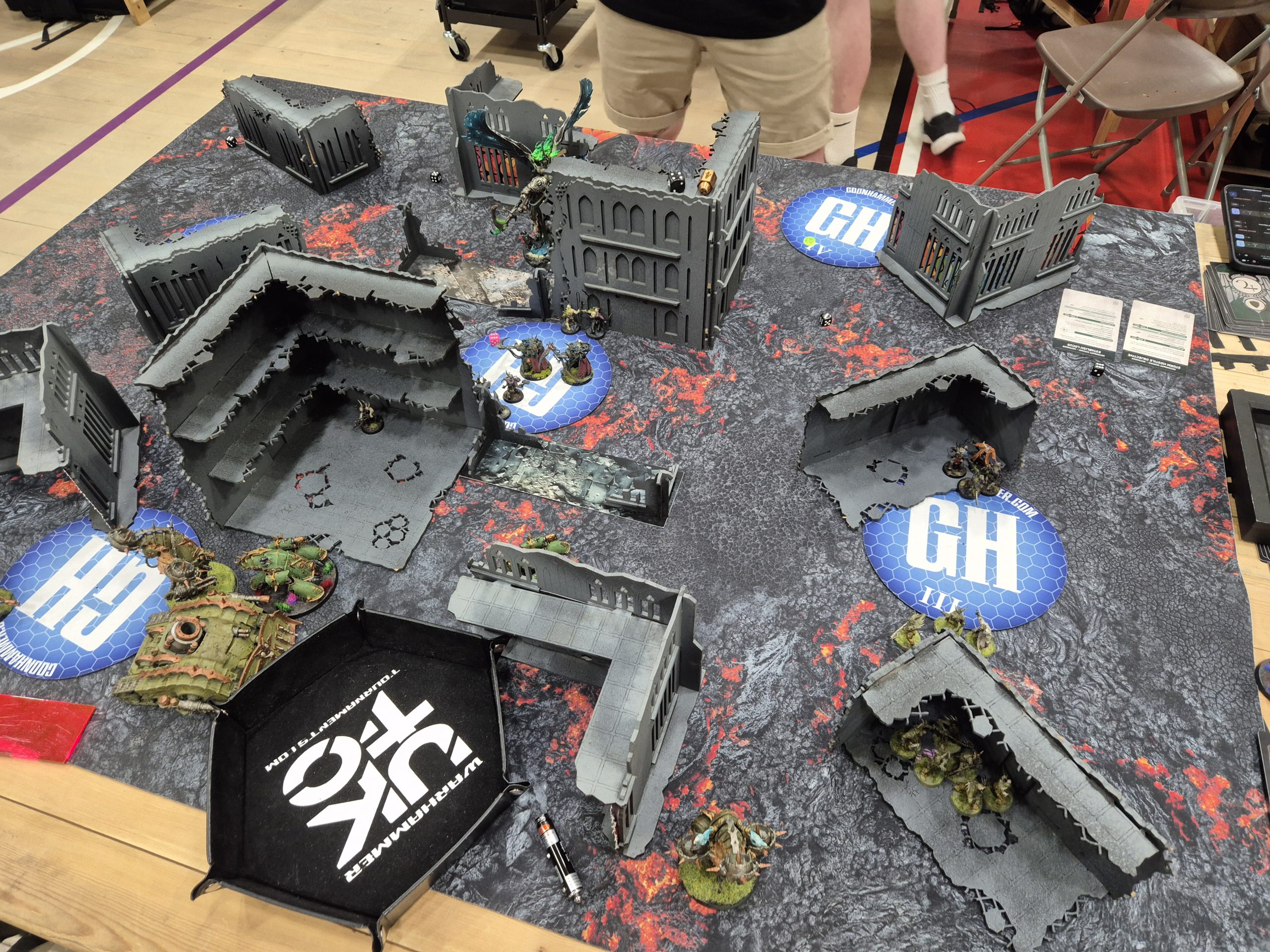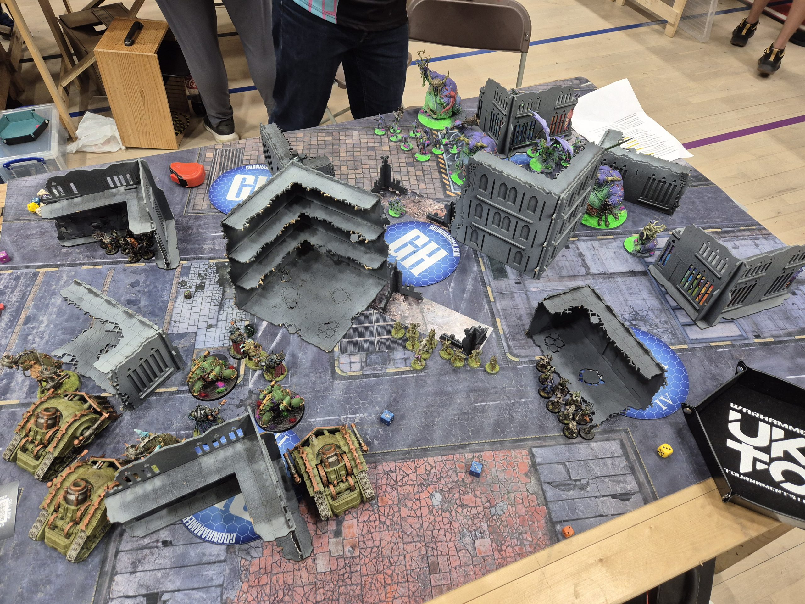 Looking at these in the week before the event, we were reasonably confident on pairings. We had decent matches for their two grindy horde armies, our plan to have an anti-Knight list paid off immediately with a Knights army to pair into, and we thought we had decent games into the World Eaters and Death Guard. In the event we got pretty much what we wanted out of it; Knights into GSC was probably the only one we'd have wanted to avoid, but Luke taking it and playing for a draw meant Wings could play the Guard, which was better than the other way around. I was left to last against Max's Death Guard, neither team fancying picking us.The final match-ups were: