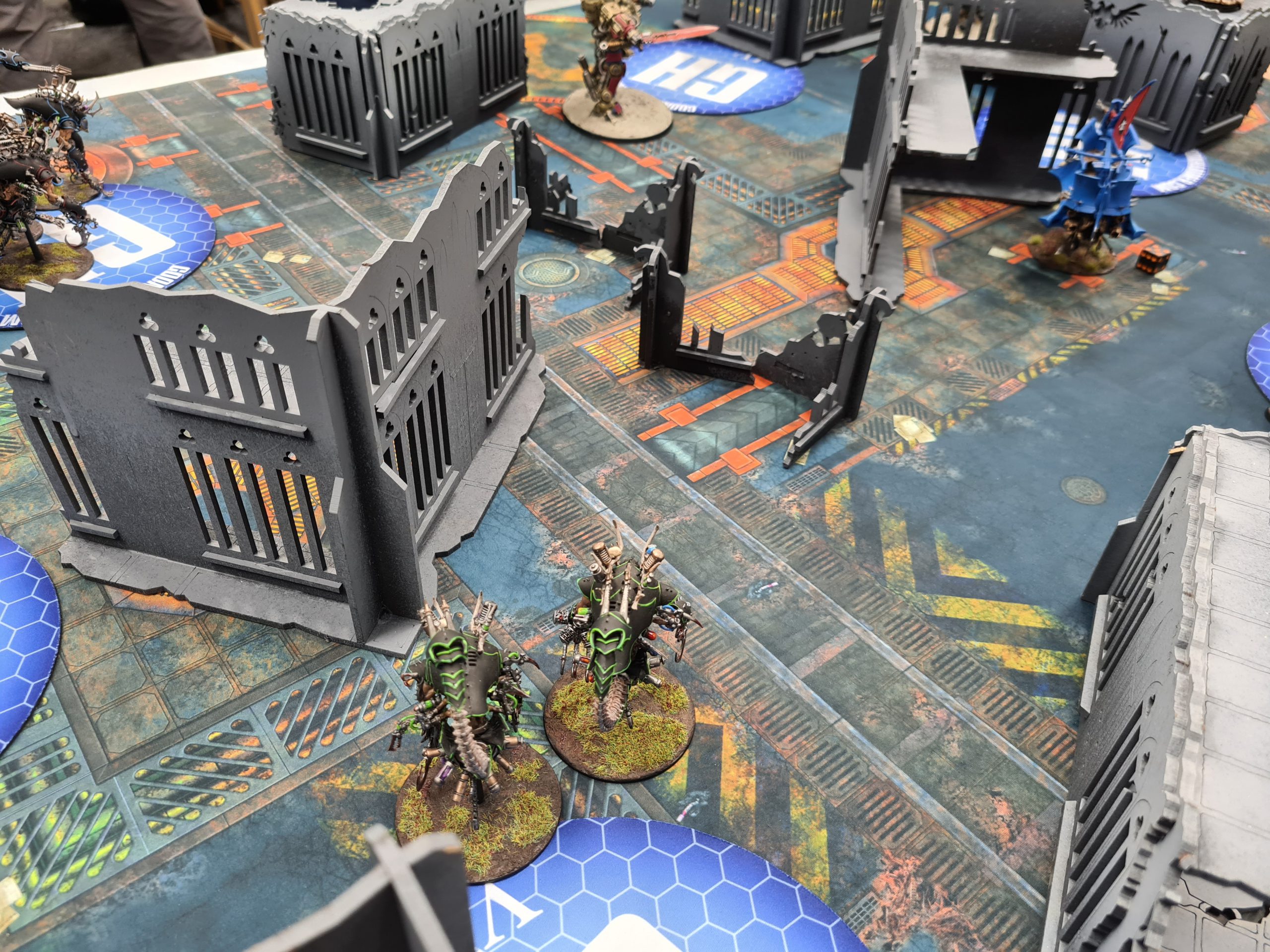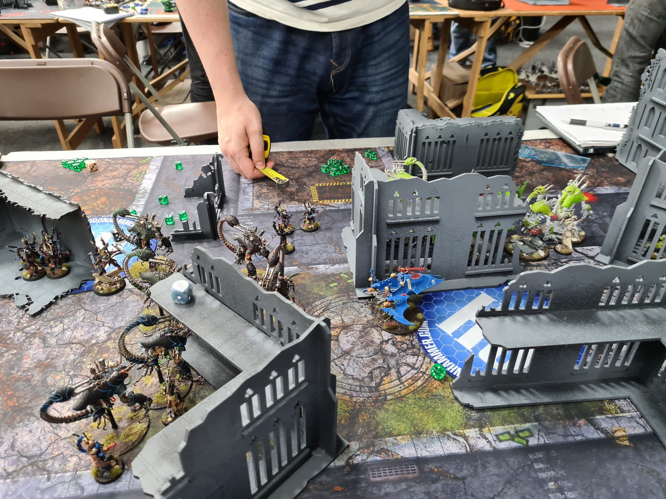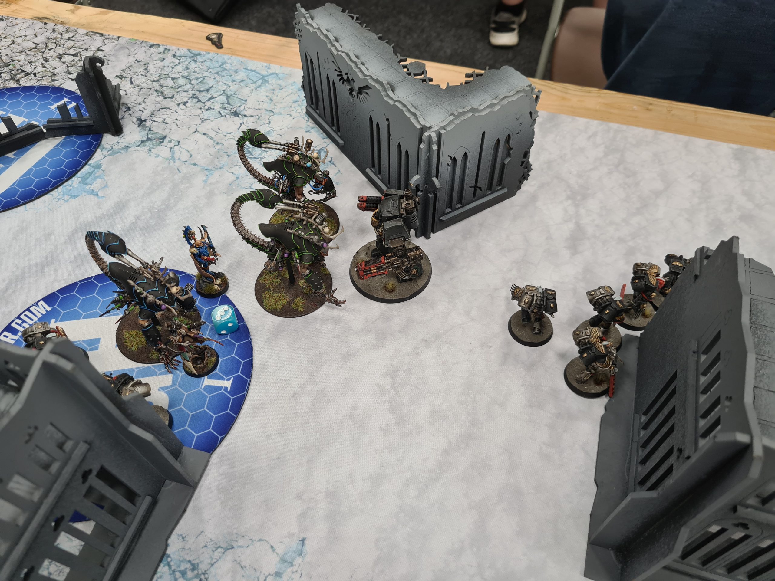 With the list redesigned thus, I was relying mostly on my prior practice with it to see me through a changed world with a new meta I hadn't yet played in. I was keeping up with Competitive Innovations and our competitive chat in the Goonhammer discord, so I had a decent idea of what was good now, and I felt like the Talos had good play into it - as well as expecting the likely mirror match, especially when lists went up for the event and literally dozens of them appeared in the numerous Drukhari armies taking the field. Luckily for my first match I had none of them, and was instead facing Grey Knights, an army which is objectively very strong but which in my experience has a fairly poor game into Talos which neuter their main shooting output from the Dreadknights. Let's talk about how that went.