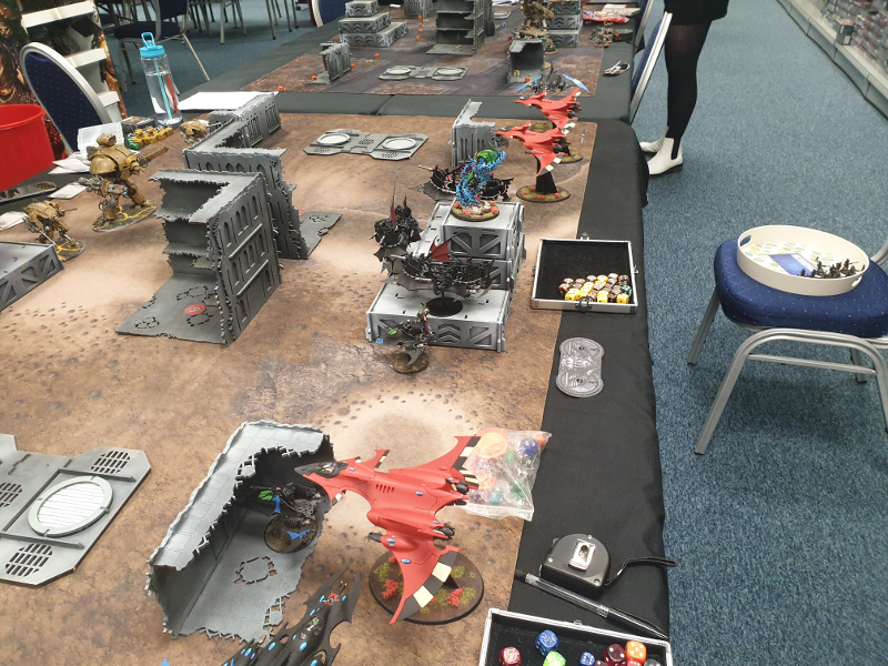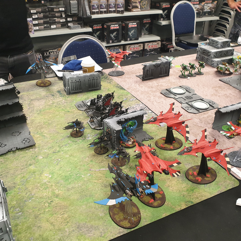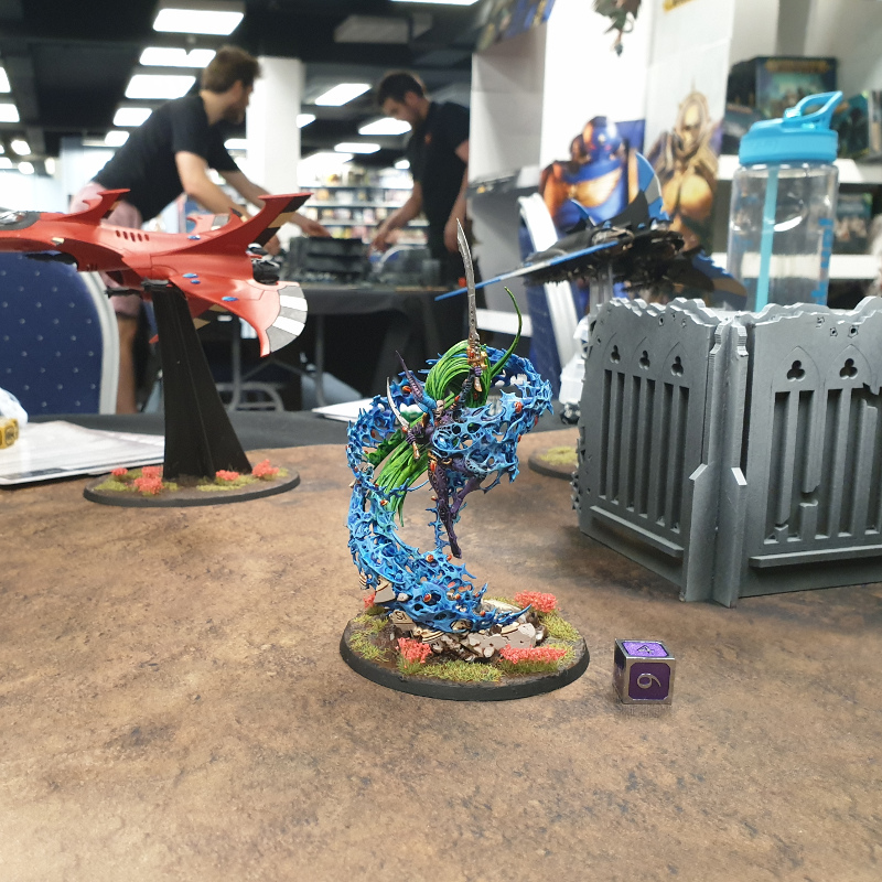 kept fucking up and it showed. Joe had board control for a huge chunk of the game thanks to the Talos sitting in midfield daring me to come out and fight them. I forgot to claim a second objective on turn 1 by like half an inch, letting him have hold more. I left my Archon where the Solitaire could get at it and was only saved by a key Perils of the Warp stopping his Shadowseer from casting Twilight Pathways at the vital moment. I forgot to yeet the Yncarne out of harm’s way, and let it get killed pointlessly. Late in the game, I mismeasured an objective again (or more likely, didn’t measure at all and just moved lazily) and missed out on hold more and the bonus point. The game went all the way to 6, when my Crimson Hunters just managed to kill off a single Death Jester (good job, guys) and Boots him, earning me 4pts and ending the game 30-28.A great lesson in why you need to practice (so you remember to do things like “hold objectives”) and the importance of maximising your points each turn, because despite being theoretically on the back foot for most of the game here, Joe played it cool and kept racking points and nearly won the thing.