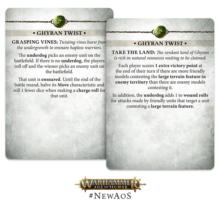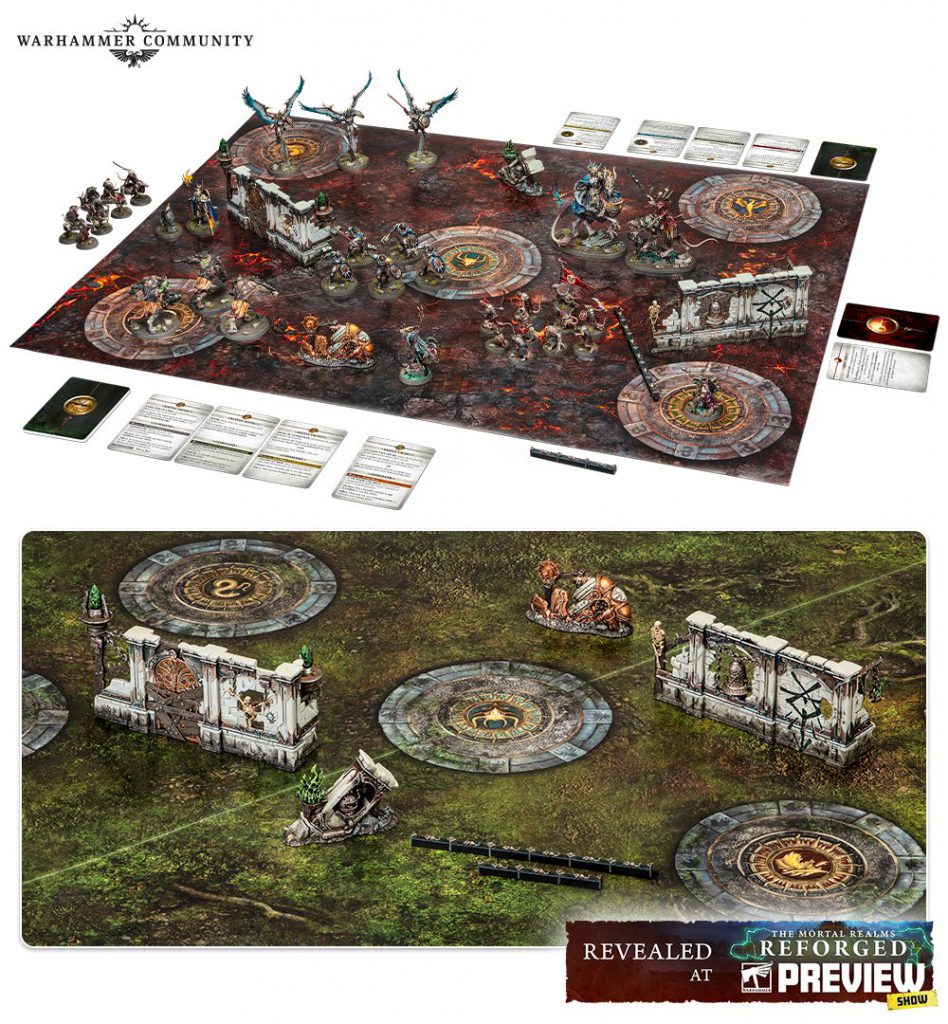 Credit: Games Workshop - It really is an objective based game. Each side of the board represents a different realm, either Ghyran or Aqshy, and has different twist cards associated with it as well as different objective layouts. The winner of the roll off to start the game can pick which player decided on which side to use, and at higher levels of play I can see some armies favoring one layout over the other.