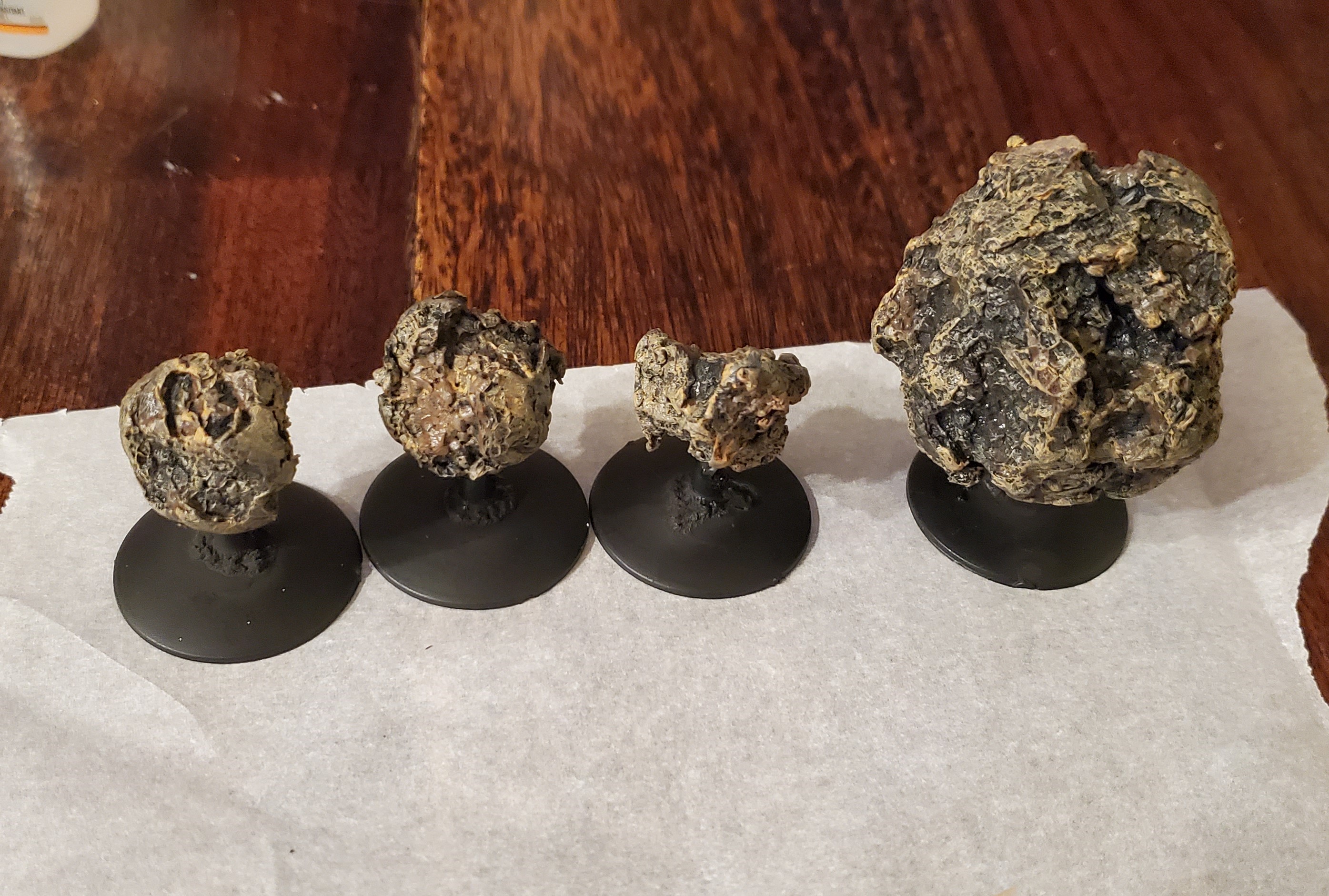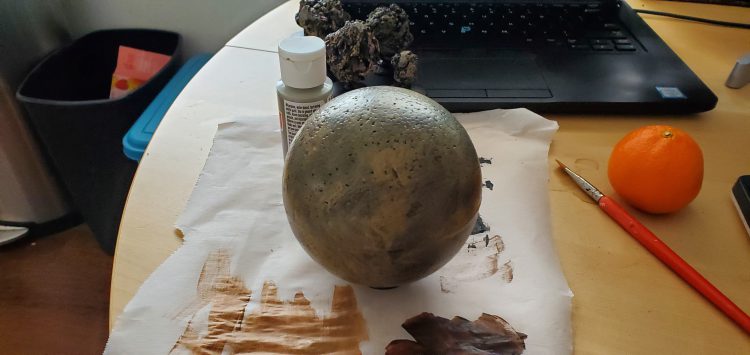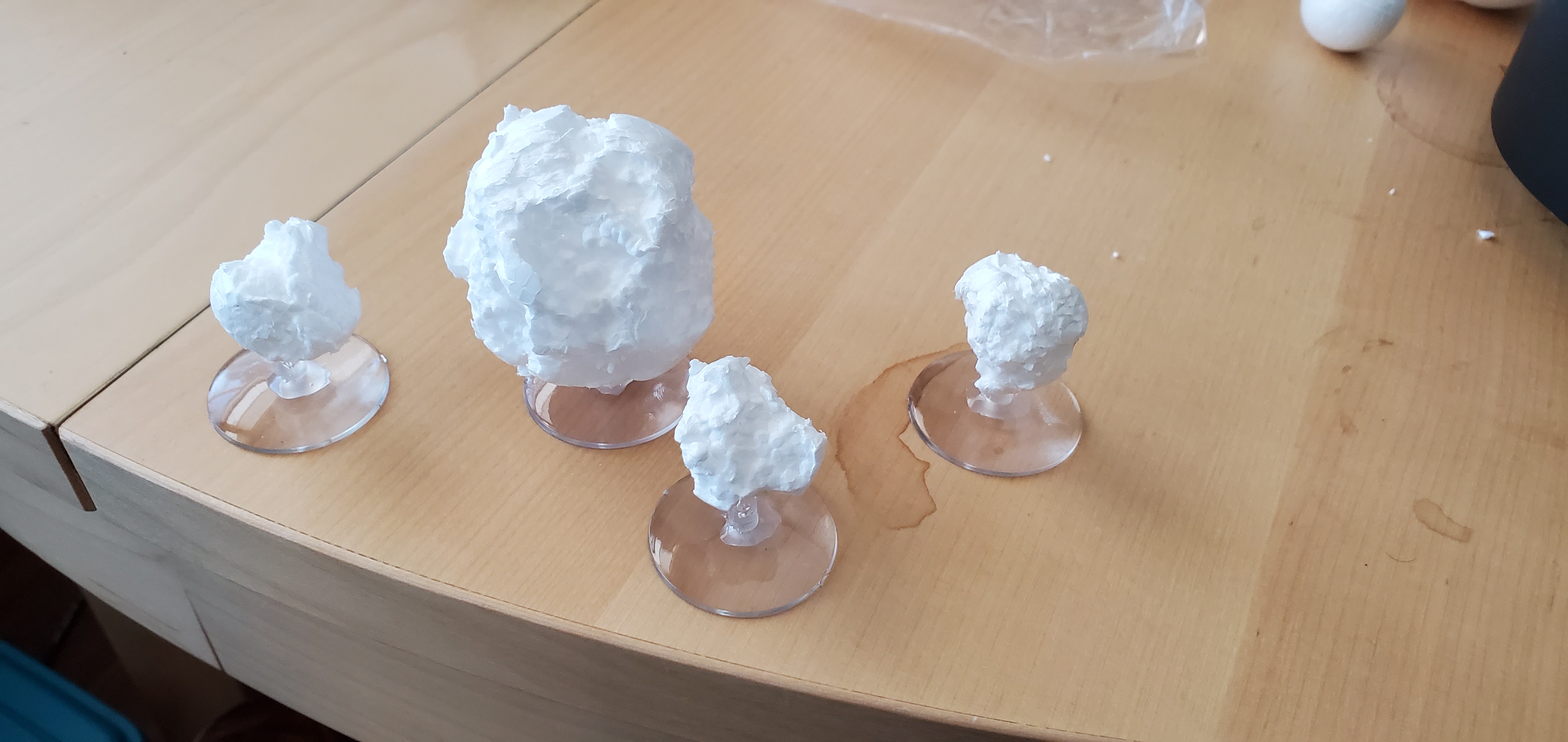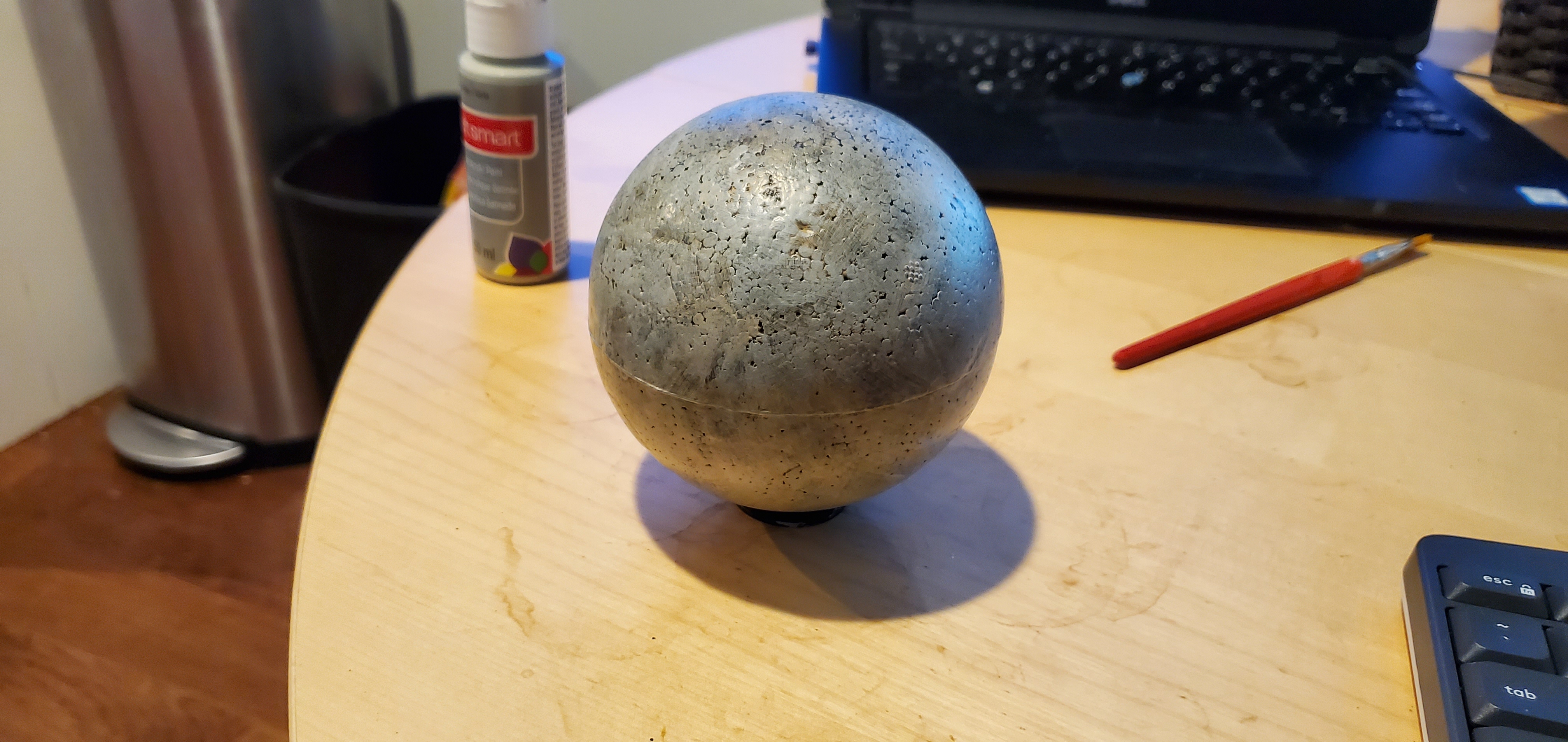 Small and Medium sized planets - I opted for full sphere's because I like the aesthetic of them over the halfUnlike with the asteroids, you don't necessarily want the pitting that comes with spray painting - so if you don't want that texture, applying a layer of PVA glue beforehand can reduce that risk. Unlike my example however, sanding the equatorial line is advised - it will show through.