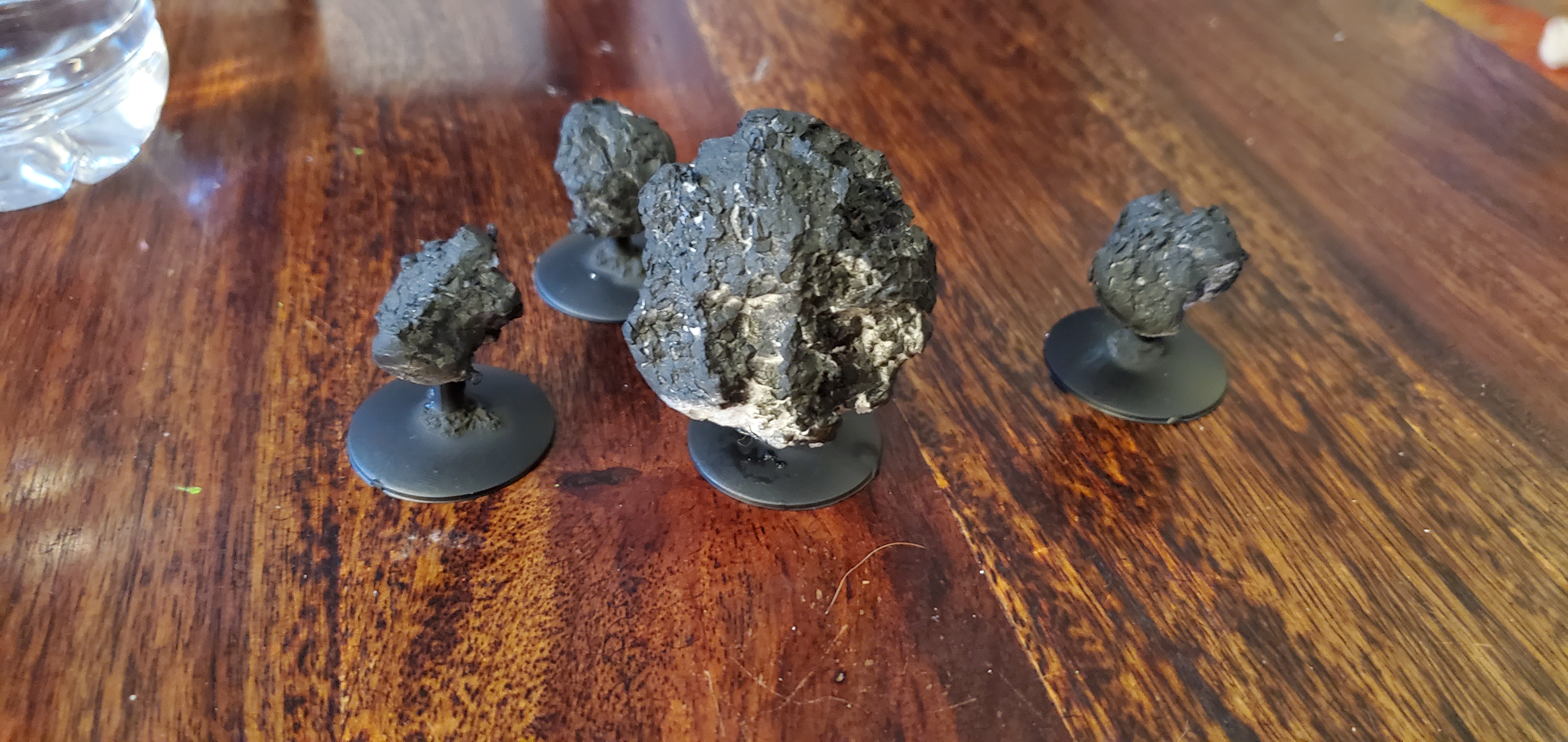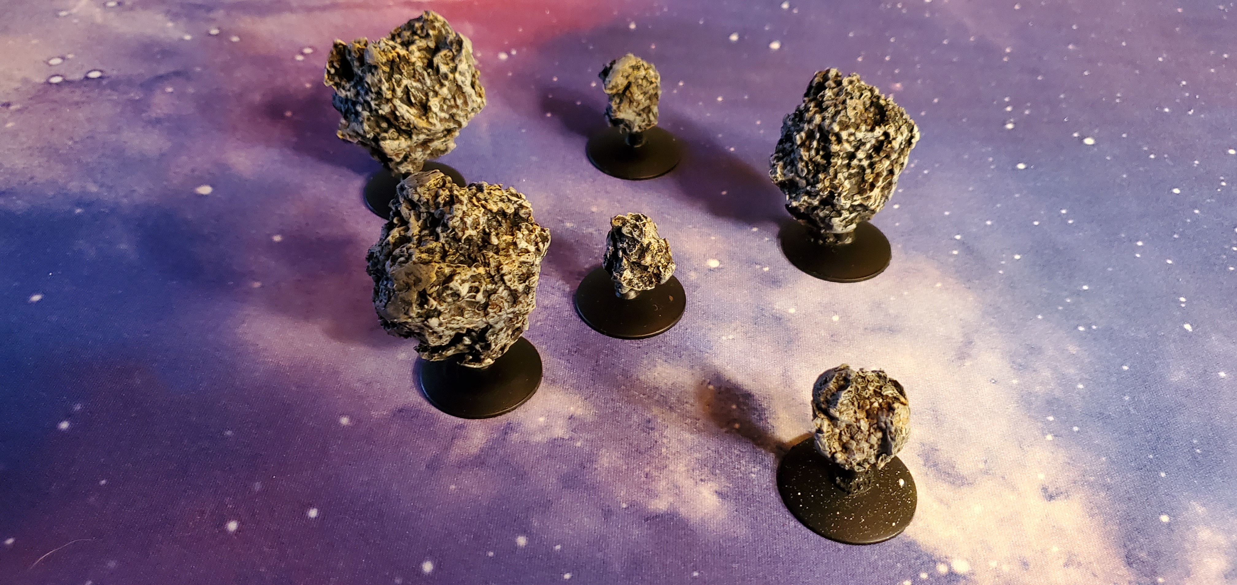 Painting up from brown before applying grey and white can really give your space rocks some depth.Once I have the rocks at the above color, I'll apply a drybrush layer of light grey, and then a real quick, thin layer of white on the raised portions to make it pop. Honestly, the longest part of this is going to be the paint drying. Not particularly thrilling.