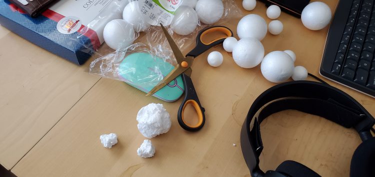 Asteroid fields are probably my favorite piece of terrain in BFG, and not just because I play Eldar. They are a potentially dangerous, but useful element as they are one of the few line of sight blocking phenomena in the game. Many ships do not want to risk navigating the asteroid field while others may use it as a safe haven. Moreover, they are incredibly easy to make. Simply grab some styrofoam balls of various sizes, slam them into a flight stand at different heights, glue them in, and start chipping away at them with your favorite sharp object.