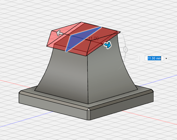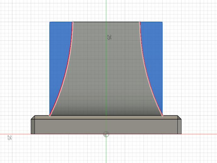 Now let’s get some height. On the surface of our 40mm square I create another 30mm x 30mm square and extrude it 25mm to give us the height that we want. This is the basic vertical shape we can start with before adding the curves to make the plinth match our overall design.