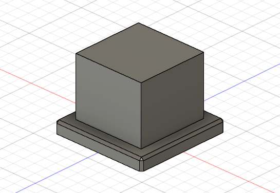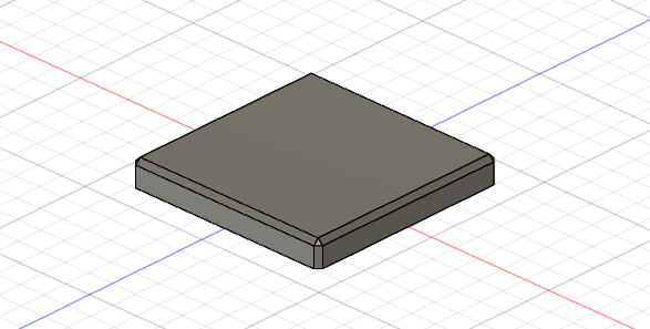 To keep it all stable, the base should be about 50% wider than it is tall. Again just a guess, but that ratio seems to work for me in the few designs I’ve done like this. So we start a new design, and sketch a 40mm x 40mm square on the origin layer and extrude it 5mm to give us something to build on. Much like the holder design, we don’t want the edges too square, but instead of using a filet, this time I chamfer the corners and top edges.