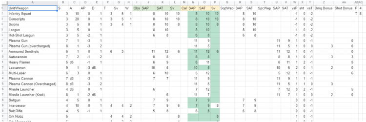 I’m a software developer by day, so my first plan was to build an algorithm to try to convert 9e datasheets to Apocalypse datasheets. I made a big spreadsheet where I just plugged stuff in, and tried to divine the rules that GW had used. What I discovered was that it really wasn’t gonna be that easy: