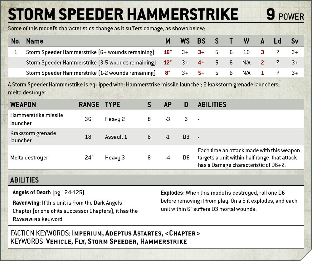 I’m sure someone out there has a list built that doesn’t work anymore, but typically the split-out datasheets aren’t preventing you from doing anything you weren’t already not doing (Oh no, you mean I can’t mix HB/AssCan speeders in with MM ones! Say it ain’t so!), and the condensed ones aren’t either (Aaah, my list that used three squads of Cataphractii and three more of Tartaros violates the Rule of Three now!), but in exchange everything got clearer and cleaner and the sheets aren’t nearly as confusing. Big fan.