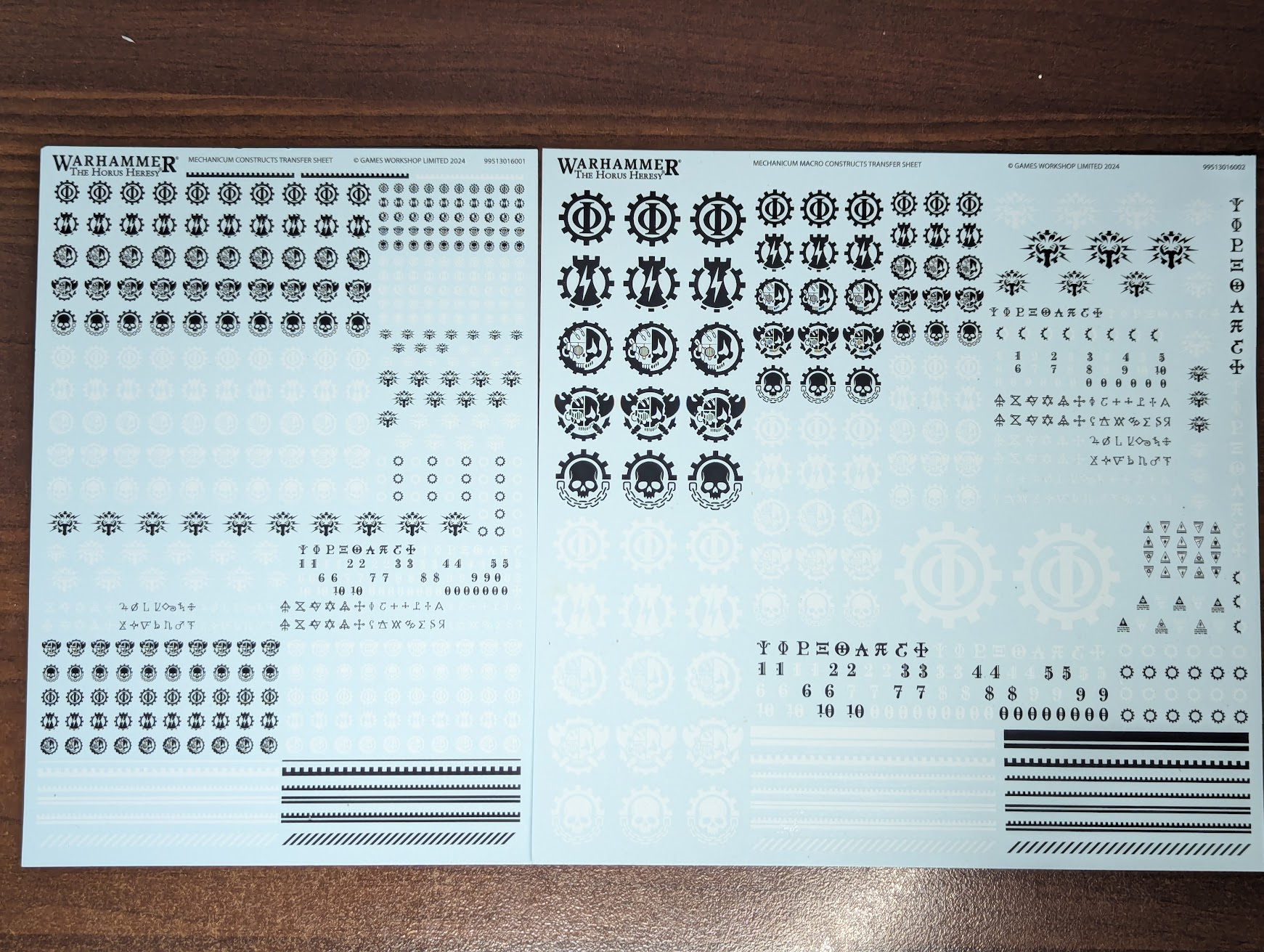 The new Mechanicum transfer sheetsUp until now anyone wanting to start a Mechanicum force has had to pony up some serious cash for resin kits or be a capable converter. While this is still largely the case, this box has all but one of the Mechanicum’s Troops and Dedicated transport options at a much more affordable price point.
