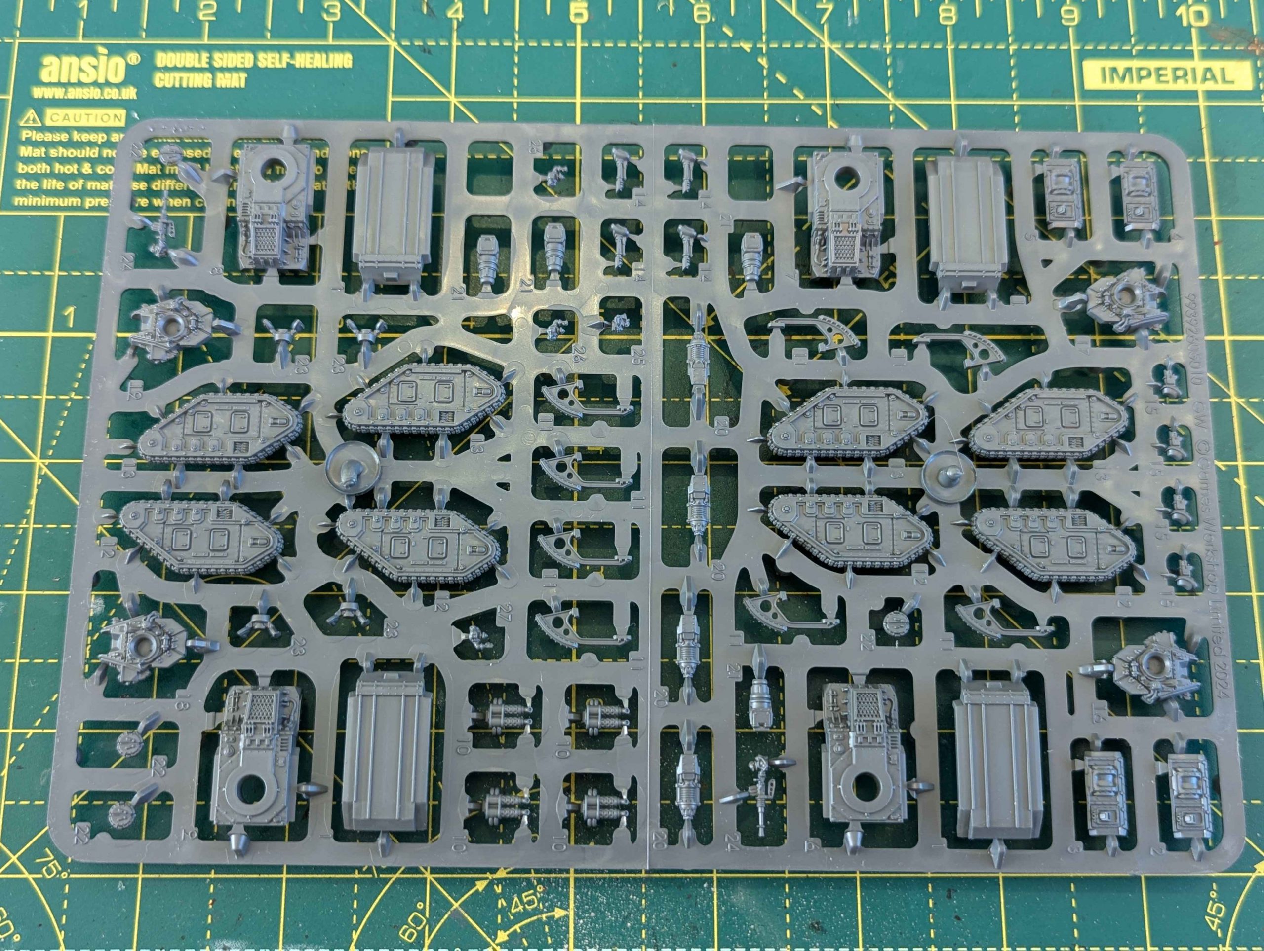 Some readers may be curious why GW have gone to the expense of producing three molds for the same tank where the only difference between the sprues is the guns. In molding you can create removable and alternate sections to the tool, that you use to change parts of the sprue you produce. It's very likely there is one Leman Russ tool and three plug ins to it that change the weapons included, saving the cost of having three separate tools.
