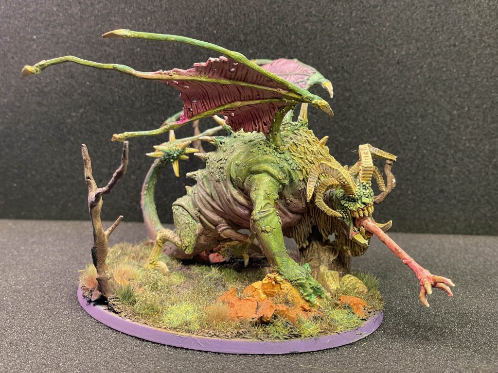 Horrifying to look at, even worse to roll attacks against. Credit: @foxy_loxy98The Jabberslythe has historically been a joke in Beasts of Chaos, an oft-forgotten, ugly resin monster that only sees play when someone was playing a grotesque prank. It should then surprise you that, after testing and hand-wringing, it’s hard to argue the Jabberslythe isn’t one of the best Monsters our army has access to in fourth edition. Its defensive profile isn’t exciting, nor is its damage at face value worth 210pts, but its ability, Aura of Madness, is shockingly good. Each combat phase, you get potentially 2-3 enemy units to deal Mortal Wounds to themselves on 1s to hit — in fourth edition, you’re forced to fight (but not pile-in), and this ability is every single combat, so if a few stray enemies get locked in with an anvil, you quite literally get to say “Stop hitting yourself”. The Jabberslythe is our answer to buckets of dice, and doesn’t even need to be in combat to be useful, making it a premier babysitter for both key units on objectives, and screening chaff ready to force an enemy to clobber themselves to death.