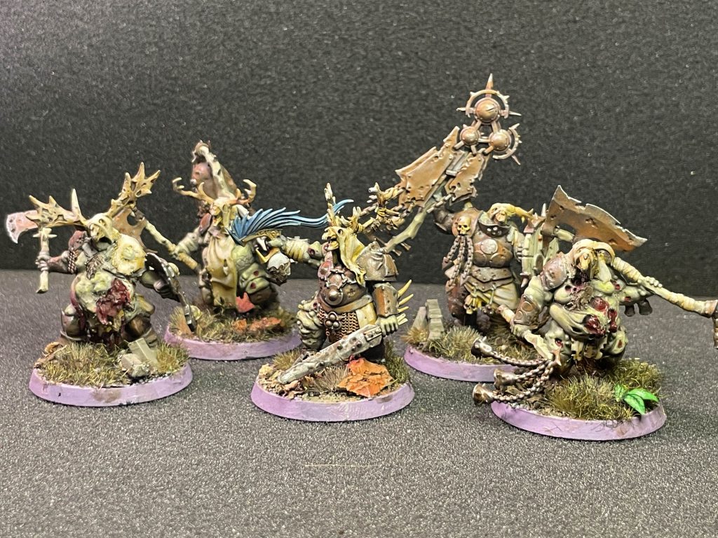 - Phulgoth’s Shudderhood: Wait…what? That’s right, one of the best units for a Beasts of Chaos army in this edition is the Maggotkin of Nurgle Regiment of Renown. This unit of 5 Blightkings, 2 Blightlords, and a Harbinger of Decay comes at a 110 point discount compared to its home faction, but arguably comes out ahead — prorated for the savings, these are some of the most efficient models Chaos has access to, if your goal is sticking on the midboard. Now that Beasts have lost marked units, the faction is fairly barebones, and that lack of options manifests in how it’s now forced to approach the game; we’re an overcosted outflanking force, largely dependent on playing for chip damage and objective control, but without point-efficient anvils in our list. Like a blotfly from the heavens, the Shudderhood complements everything Beasts needs to do to keep up in 4.0, and as you’ll see in our Example Lists section, there’s lots to love. If you aren't keen to spend upwards of $150 on units that are for an army which has a single year of play time, good news — converted Tzaangor Enlightened on Foot are great Blightkings, converted Shaggoths are Harbingers of Decay, and refitting converted Tzaangor Enlightened on Disk can probably pass as Blightlords. Just be sure to check with your TO, and don't be afraid to pull the 'My army is being squatted' card (for ethical reasons this is a joke).