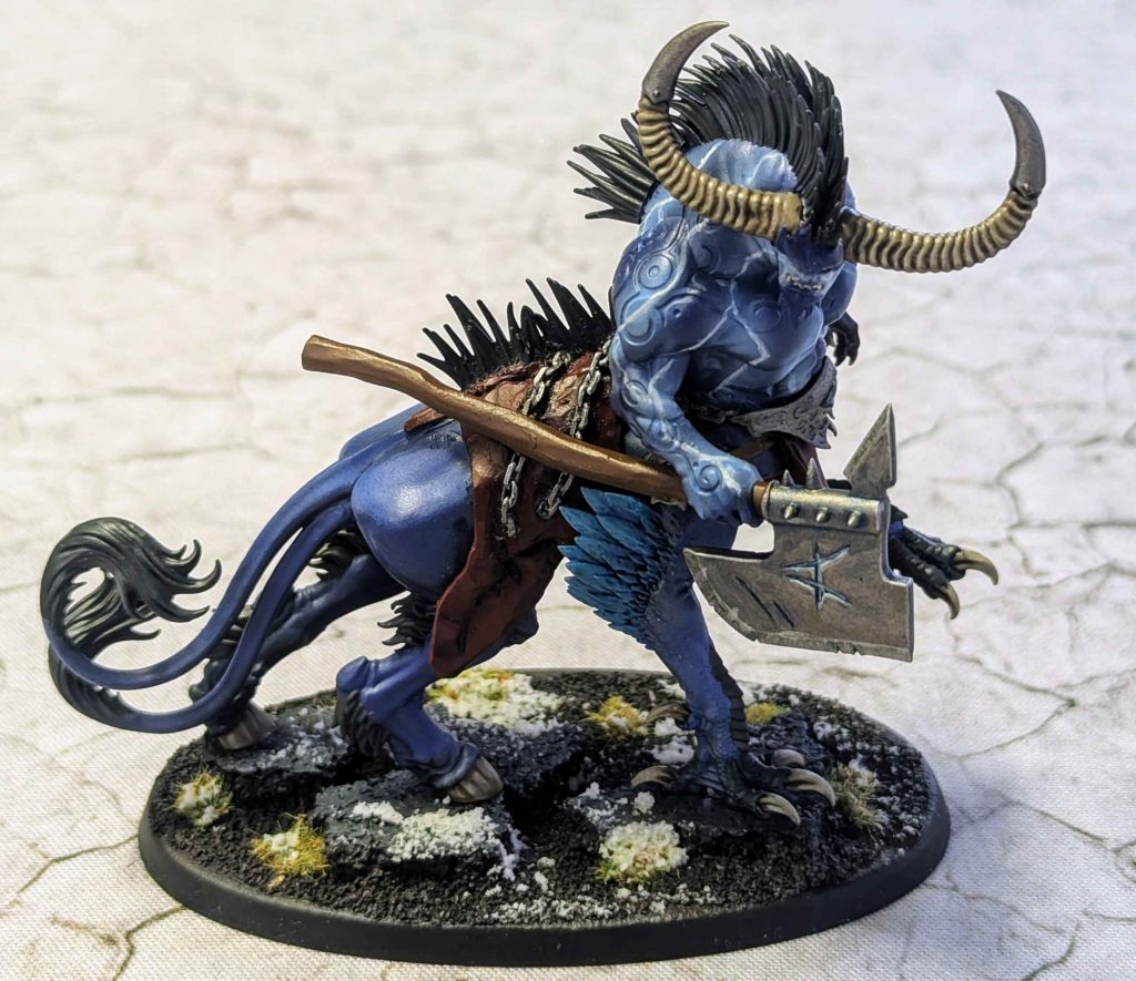 The Taurus has gotten better every edition, go figure. Credit: Intrepid MuttonThe in-house lore is the Lore of the Twisted Wilds, and unfortunately it pales in comparison to the strength of the faction’s Manifestation Lore, meaning you’re far more likely to see Wizards fishing for Manifestations rather than casting from the other available options. Viletide is our Unlimited spell, casting on a 7 and dealing d3 damage within 12”, also turning off commands. If we had Level 2 Wizards, this would make more sense as an option, but with the available tools it’s blandly competent. Vicious Stranglethorns is next, casting on an 8 and reducing Charge dice by 1, and movement by half, for an enemy unit within 12”. This, again, would be an exceptional pick if we had better Wizards, and I can see a world where this is a brutal counterpunch using Magical Intervention, but we lack the consistency to make such a strategy worth 1 CP. Finally, there’s Devolve, casting on a 7, and making a non-Hero unit within 12” unable to use commands, have OC 1, and only be able to move if their movement ends closer to the caster. This is a slam dunk with the Ravening Direflock Manifestation, but in order to couple those two spells, you’d need 2 Wizards on the board, something Beasts will have issues with. Fundamentally, this faction cannot lean into its magical prowess this edition, so Spells that seem solid become far less impactful in the face of the overwhelmingly useful Manifestations.