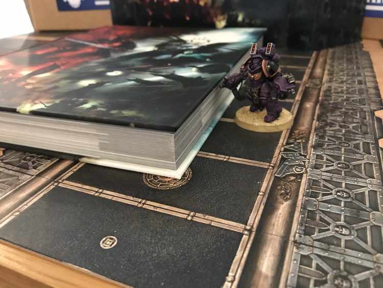 Scale aggressor is not sure about lugging this to events.The 9th Edition core book is an extremely hefty tome, substantially more so than the 8th edition one. That would make lugging it around tournaments a literal burden, and flipping to the right rule a pain. As well as only having the rules you need for games, the GT2020 pack is smaller and ring bound, making it vastly more lightweight and less likely to get destroyed by repeated use.
