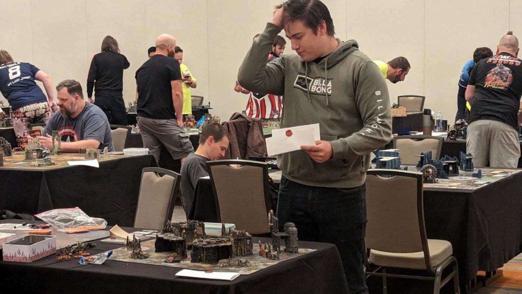 - The venue was an amazing locale, which great panoramic view, which I saw very little of since I was glued to the tables! It was amazing to see all the wonderful armies that people brought out. Between narrative, and the best in show armies there was some serious visual fireworks going off at all times.On Sunday the narrative finale had a row of warhound titans march across a field only to have traitors turn on their brothers. Hearing that as the back drop to the day 2 games was honestly amazing. Those narrative players sounded like they all had a blast throughout the weekend