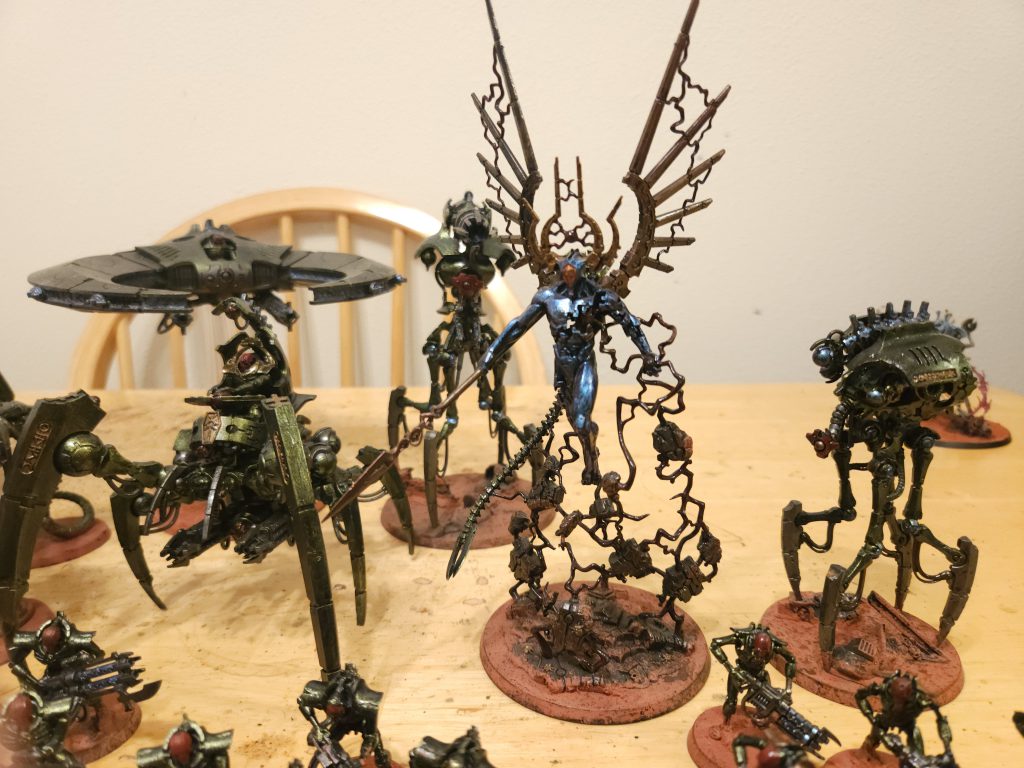Painting in the background was done by my Aunt, trophy matched.Before diving into the cosmic drama, let me address the elephant in the room — what happened during my World Eaters adventure? Life, that's what. Real-life obligations dragged me into the Abyss, and the World Eaters project got benched. But fear not, for Necron warriors and metallics came to the rescue, offering a quick and joyful painting escape and some pretty fun games.