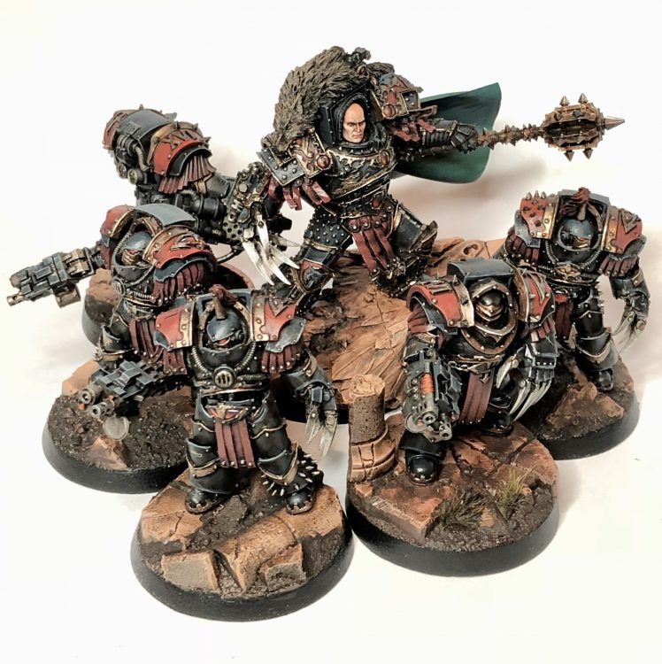 Chieftains are a 125pt HQ choice which can also be taken as a retinue for a Sons of Horus Master of the Legion, consisting of four Chieftains and a standard bearer carrying a legion standard, all with boarding shields. They’ve got the nasty Reaver Attack Squad statline of WS5, two wounds and two attacks, and the ability for the entire squad to take artificer armour at five points per model. They also have Relentless, allowing them to move and shoot with Heavy and Ordanance weapons, and charge if they fire Heavy, Ordnance or Rapid Fire weapons, which could be nasty because Banestrike Bolters are nothin to sniff at, being S5, AP4 and Breaching 6+ with rapid fire, with the only downside being an 18” range. You’re basically porting around a stronger heavy bolter at that point!Any model can have a chainaxe, power weapon or power fist, which really means that a bunch of your Chieftains will be taking Carsoran power axes for the Breaching 5+ from the Sons of Horus Armoury. Since you can’t benefit from having two weapons anyway thanks to the boarding shield you’re carting around, this is a pretty nasty choice. The Standard bearer having a Legion standard is also something to call out, meaning these nasty little so-and-sos will be Line so long as the standard bearer is alive. This shouldn’t be too hard, as any model in the unit can accept and accept challenges thanks to Chosen Warrior.